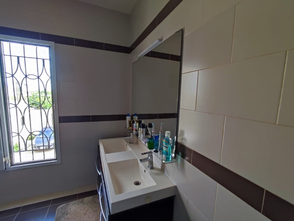 Belle villa à vendre à la Somone pas loin de la lagune. Villa avec un grand terrain arboré de 1800 et une grande piscine de 14 X 4m50. La villa est composée de 6 chambres, dont une chambre patentale d'une superficie de 35m2 avec dressing et salle de bain.