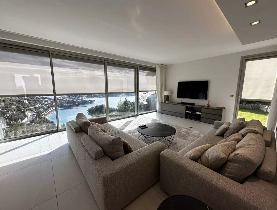 Nestled between Monaco and Nice, just minutes from the international airport, this contemporary architect-designed villa perfectly embodies the Mediterranean art of living. Set in an elevated position within a private domain, it offers a breathtaking panoramic view over the Bay of Villefranche-sur-Mer, the legendary Cap Ferrat, and the surrounding hills a true postcard scene by day and night. Elegance, Light and Absolute Comfort Inspired by Californian architecture, the villa spans 360 sqm across three levels connected by an internal elevator. Every space has been designed to maximize light and create seamless continuity between indoors and outdoors. The main floor features a bright open-plan living area, with a designer kitchen, dining room, and lounge, all opening onto a spectacular terrace facing the sea. The intermediate level offers a private lounge and an exceptional master suite with office, dressing room, bathroom with freestanding tub and shower, opening onto a planted terrace. The garden level includes four en-suite bedrooms, all opening to the pool and garden, plus a hammam and modern pool house. Outside, a stunning 20-metre heated pool, a contemporary pool house, suspended terraces, and a landscaped Mediterranean garden adorn the 1 080 sqm plot. An independent 48 sqm apartment is ideal for guests or staff. A car lift provides access to the secure parking area. Smart-home technology, integrated air conditioning, noble materials, and a security system ensure total comfort and peace of mind. A Truly Exceptional Property Unique in its location, architecture, and view, this villa embodies refinement, serenity, and contemporary luxury. Perfect as a main residence, luxurious getaway, or premium investment every detail invites you to dream.