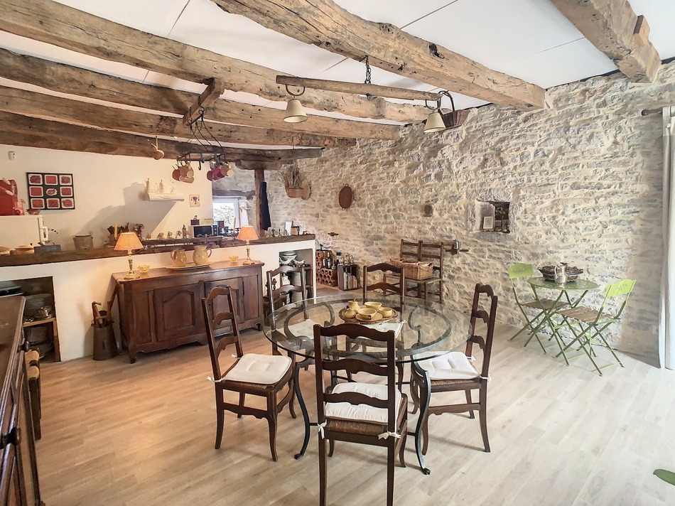 On the Chemin de St Jacques, former coaching inn offering very spacious rooms and tastefully restored while keeping all the character of the old. With more than 300 m² of living space, this building has everything to please: On the ground floor, a masterful living room of 66m² with exposed beams, old parquet floors and old mangers, a dining kitchen of more than 40m², as well as a library, all with direct access. direct to the garden Upstairs, superb mezzanine of around 50m², 4 bedrooms (around 15m² each) a shower room and WC At the back of the barn, you will find an independent one-bedroom apartment with a beautiful living room 30m², bedroom, shower room, wc as well as a private exterior and entrance. The garden of around 400 m² is surrounded by stone walls out of sight with a gate. You will find a very beautiful lean-to (50m² on the ground) which benefits from a well that is always supplied - the old cart of the post office there. is always parked . As you will have understood, this property is ideal for a large family, commercial project or welcoming pilgrims