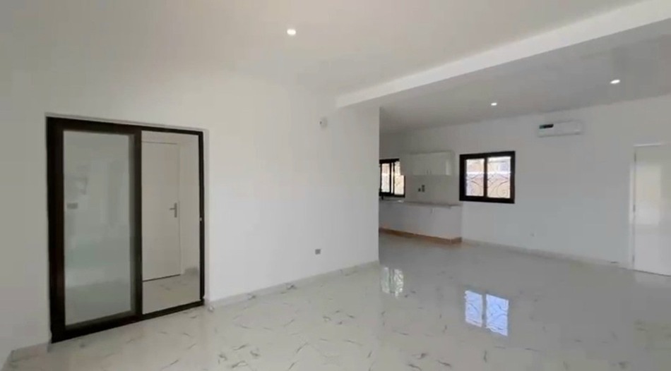 New single-story villa built in 2024 located in a secure residential area in Nguerigne close to highway access, shops, and schools. This villa, sold unfurnished but with a fitted kitchen, offers beautiful spaces and is composed of a large living room including a lounge/dining room, a fitted and equipped kitchen, as well as 3 bedrooms each with its own bathroom, a storage room, and a guest toilet. The living room opens onto a covered terrace and a swimming pool. The pool is solar-powered, and the villa has a well and a water reserve. There is an indoor parking space at the entrance to the villa. Living area: 200m² Land area: 500m²