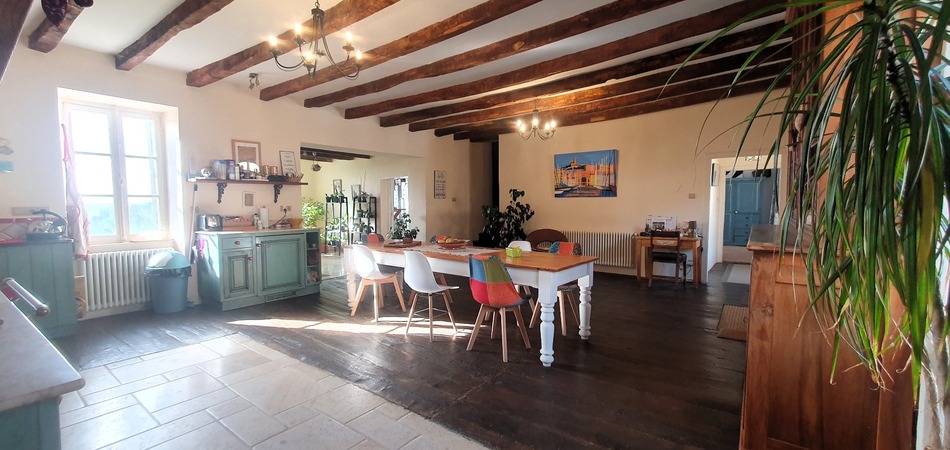 This magnificent farmhouse has been renovated while retaining its original character. Situated in a small hamlet, the property is quiet and not overlooked. The farmhouse is built around a large secluded courtyard leading to a large stone house with 430 m² of living space. A very large barn faces it, with a smaller barn further on. On the other side, the south-facing facade offers sweeping views over the surrounding countryside. The heated, electronically maintained, salt water swimming pool is a little further away. The land measures 1.2 hectares. The house comprises spacious and pleasant rooms, five bedrooms, a large kitchen/dining room, two large lounges, a games room, 3 showers, 1 bath and 5 toilets. From the courtyard, a few steps lead up to the vast kitchen, a central, light-filled room. This kitchen has a continuation of the old kitchen (souillarde) and a pantry. To the right, a corridor leads to a storeroom, a toilet and an en suite bedroom. On the left is a cosy lounge, followed by a more formal reception room. Both have wood-burning stoves. Then a corridor leads to a bedroom. At the end of the corridor, a staircase leads to the first floor, where there is a toilet, three bedrooms (one of which is over 40 m²), a room used as a linen cupboard, a spacious bathroom (22 m²) and a large room where another staircase leads back to the kitchen. Central heating is provided by a gas-fired boiler and wood-burning stoves. There are cellars under the entire building. The current owners have carried out a number of renovations: roof renovation, creation of a pool house, revision of the swimming pool, creation/renovation of a bedroom, change of windows, installation of external doors including the very beautiful barn door, etc... This property is very spacious. In addition to the more than 400 m² of living space, there are 600 m² of outbuildings and cellars for storage and DIY purposes, as well as the possibility of developing an existing gîte business. It could also be used for seminars or yoga courses, or simply to accommodate a large family. The property is located near the village of La Salvetat-Peyralès, with all amenities, and 10 minutes from Rieupeyroux, with its supermarkets and colleges. Rodez airport is 45 minutes away, Toulouse 1 hour 45 minutes.