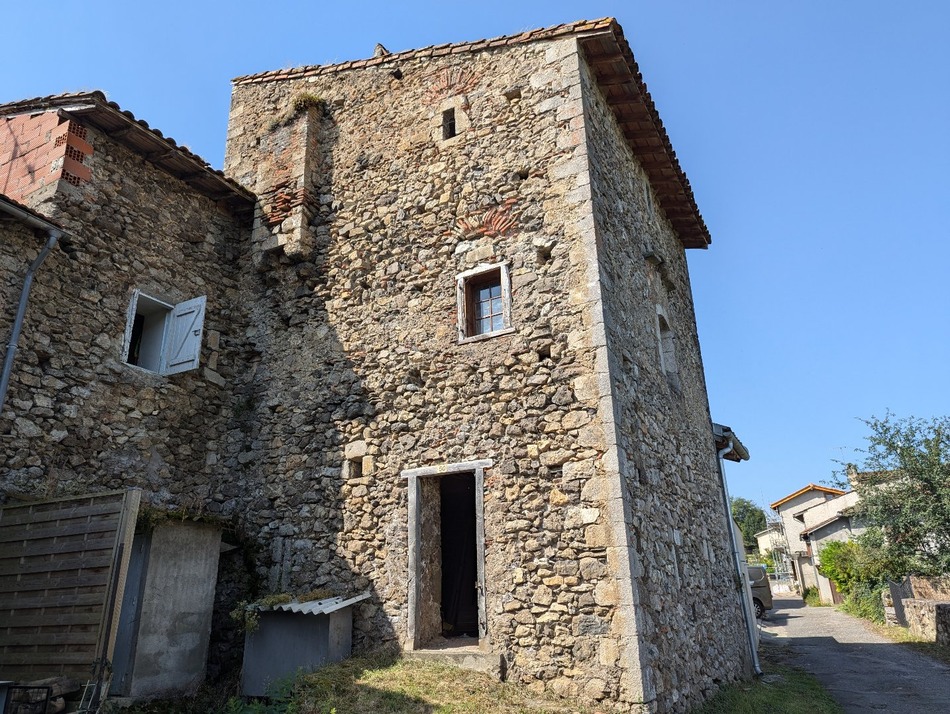 This house currently being renovated is a former 13th century watchtower located in the heart of the village of Montjoie en Couserans. It is composed of 3 levels of approximately 26 m² on the ground floor and 30 m² for the upper floors. The frame, the roof and the floors are recent. The house is not supplied with electricity or water, does not have sanitation and has no exterior. This building, in the ABF zone is ideal for lovers of old stones and history. Information on the risks to which this property is exposed is available on the Georisques website: www.georisques.gouv.fr »
