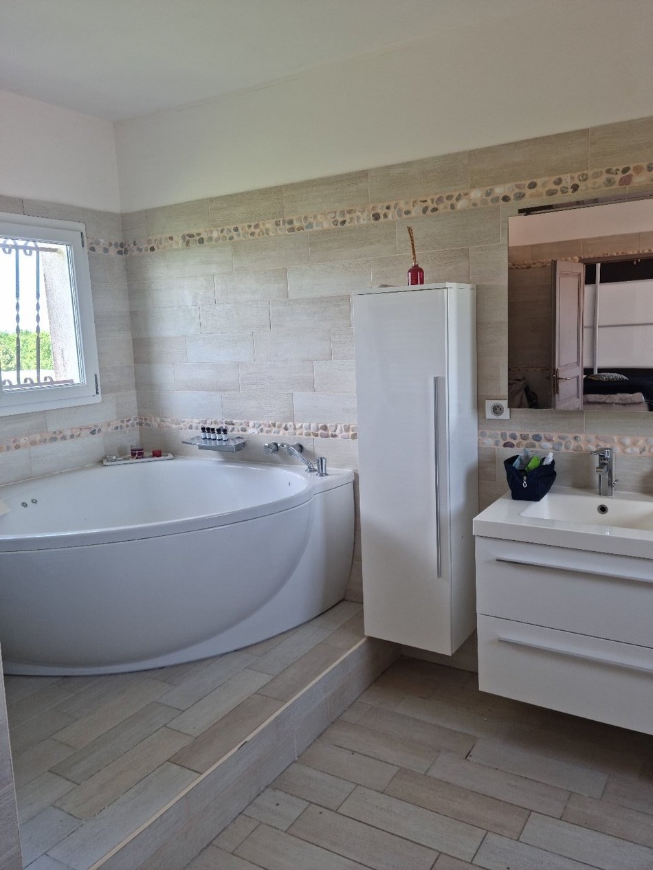 15 minutes from Montauban Nord and 50 minutes from Toulouse Blagnac in perfect calm in a lush wooded setting, let's discover this atypical house of approximately 290m² of living space. The land of approximately 5000m² is completely enclosed. The house, not overlooked, benefits from a 200 degree view of the plain and the hillsides. On the ground floor The entrance gives access to a beautiful living room of 55 m² with open and equipped kitchen. A living room of 40m². These 2 rooms open onto a pleasant covered terrace of 15m² with electric blind and access to the swimming pool. Night space: 3 bedrooms with cupboards, bathroom, shower room and toilet. A large room of 25 m² currently a gym and which can have another destination thanks to its access to the terrace. 1st floor a master suite of 40m² with bathroom (balneotherapy and light therapy) shower and 2 sinks WC and dressing room. A terrace and an external staircase make this master bedroom completely independent. The Plus A 10m x 5 swimming pool sheltered from view and a 6-seater jacuzzi A double garage of 35 m² But the most remarkable is the calm of this place a few minutes from amenities and schools (school transport) and the enclosed and largely wooded garden with fruit trees. This family home with all the comfort and its potential deserves your visit agency of Montauban