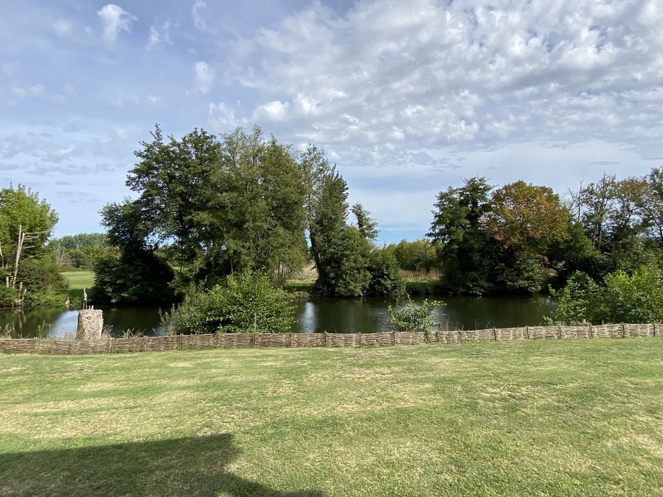 Idyllic located on the edge of a river, facing due south, a prestigious architectural property with its heated swimming pool nestled in the middle of a lawned garden of more than 2000 m2. This property offers breathtaking views from each living room and night, from its tower, the covered terraces upstairs, its intimate corners in the garden such as the jetty, the swimming pool (9/4 m, new liner!). Day and night bathed in absolute silence, in a luxury environment, on the edge of a village with baker and restaurant, just 5 minutes from Aubeterre-sur-Dronne, one of the most beautiful villages in France. This property is ready to move in, the facilities and equipment are of a high standard, in addition it is sold fully furnished. Its air conditioning, its double-glazed wooden frames, the roof redone in 2015, the sanitation to standards, the large bay windows, etc. guarantee contemporary comfort from the start. A large living room with stove, a lounge, a large kitchen equipped with all appliances, four bedrooms including three with its private bathroom/shower/WC, a shower room/laundry room harmoniously fill the living area of 160 m2 on two floors. A rare and exceptional offer, in an even rarer and more exceptional place.