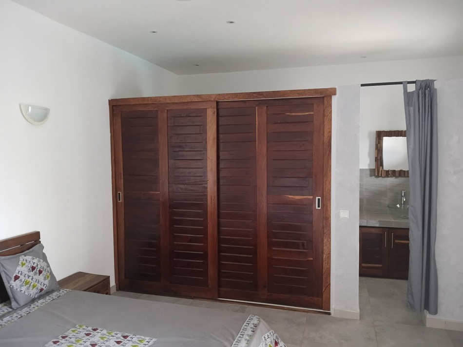 Sélection Sénégal vous propose une belle villa contemporaine située tout proche du Rond point et du centre ville de Ngaparou . Face à l'école bilingue EBA et dans un cadre résidentiel calme et facile d'accès . Batie sur un beau terrain arboré et engazonné de 1226 m2 avec arrosage automatique . Elle développe 205 m2 et se compose de 4 spacieuses chambres avec chacune sa salle d'eau et de grands rangements Un vaste salon , séjour , salle àmanger très lumineux . Une cuisine moderne aménagée et équipée avec ilot central et un cellier attenant , une 2ème cuisine équipée .Très grande terrasse couverte aménégée . A l'extérieur vous profiterez d'une vaste piscine alimentée à énergie solaire . Une chambre de gardien et un abri voiture couvert . La villa vient d'etre entièrement rénovée tant à l'intérieur ( peintures ,carrelages des salles d'eau , boiseries ) qu' à l'extérieur tous les murs d'enceinte ont été repeints .Btteries/onduleur en cas de coupure ,panneaux solaires , Forage ,réserve d'eau , Surpresseur Jardin arboré