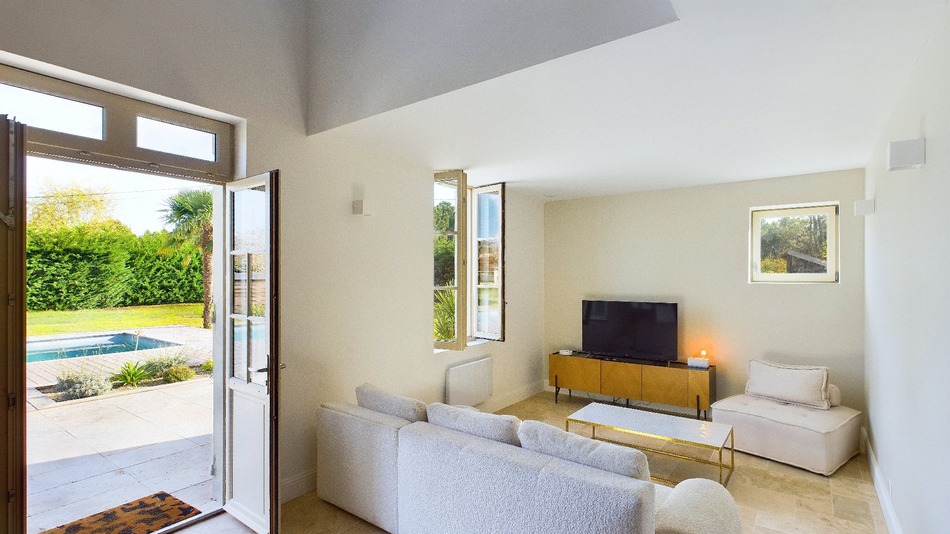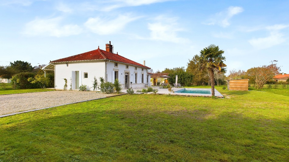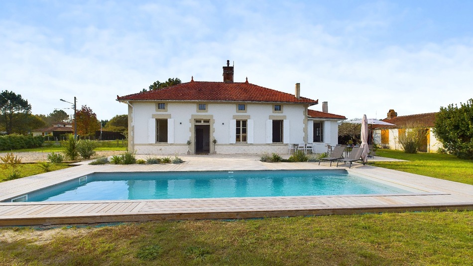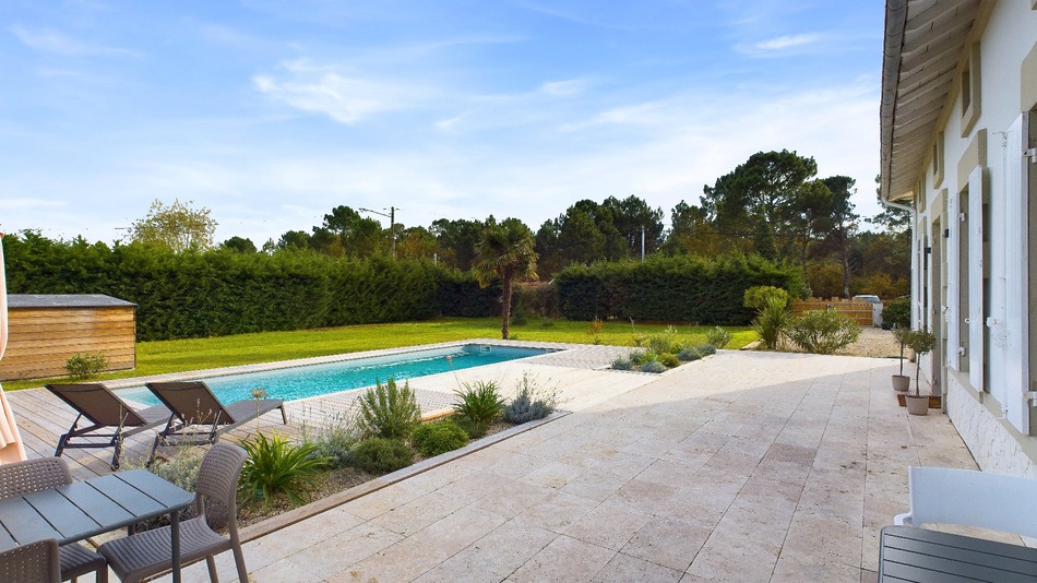 Magnificent charming villa between the Landes beaches and the lakes of Biscarrosse. Discover this superb, fully renovated villa, ideally located to enjoy all the region's attractions: the Landes beaches, the large lakes of Biscarrosse with their cycle paths, and the serenity of the National Forest. You will be immediately captivated by its calm and exceptional location. This charming residence has been renovated with high-end amenities and fine materials. It is composed as follows: Ground floor: a vast living space of 78 m² bathed in light, tastefully arranged, including a living room, a dining room, and a modern kitchen. Three spacious and comfortable master suites. Upstairs: A beautiful staircase leads you to the upper floor where you will find a spacious bedroom and a large sleeping area with its own bathroom. Exterior and outbuildings: A magnificent 90 m² travertine terrace and a 70 m² wooden terrace frame a pretty swimming pool, perfect for relaxation and receptions. The whole is located on an enclosed and wooded plot of 2100 m², where there is also a 70 m² outbuilding with its authentic bread oven. A virtual tour is available on request.