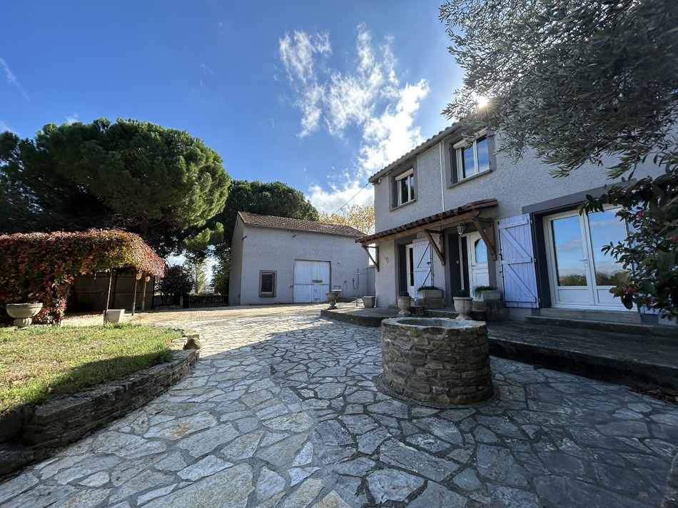 Detached house, renovated and well located for those looking for proximity to Carcassonne. Ideal location for professionals who need a large workshop/garage. Several parking spaces under a carport plus land in front of the house. No neighbors. Vineyard land with Cabernet Franc, Cabernet Sauvignon and Sauvignon Blanc grape varieties. Large vegetable garden and water drawn from the river (several places have taps to be able to water and clean tools/machines. There is also a small shed for gardening tools and a place to store firewood. The house has an entrance with pantry and WC. Modern kitchen with induction hob, extractor hood, oven and fridge. Door with direct access to the terrace. Large living/dining room of 34m² with fireplace insert and door to the terrace. Office with staircase, access to the first floor. Here 5 bedrooms (including three large and two children's bedrooms). Bathroom with bath/shower, sink and WC. Enclosed garden with carport, a well and large barn on two levels of 80sq.m each floor. You can leave your house and go directly into the vineyards. A path around gives easy access to all the plots and allow you to take a beautiful walk around on foot. Close to all amenities, schools etc