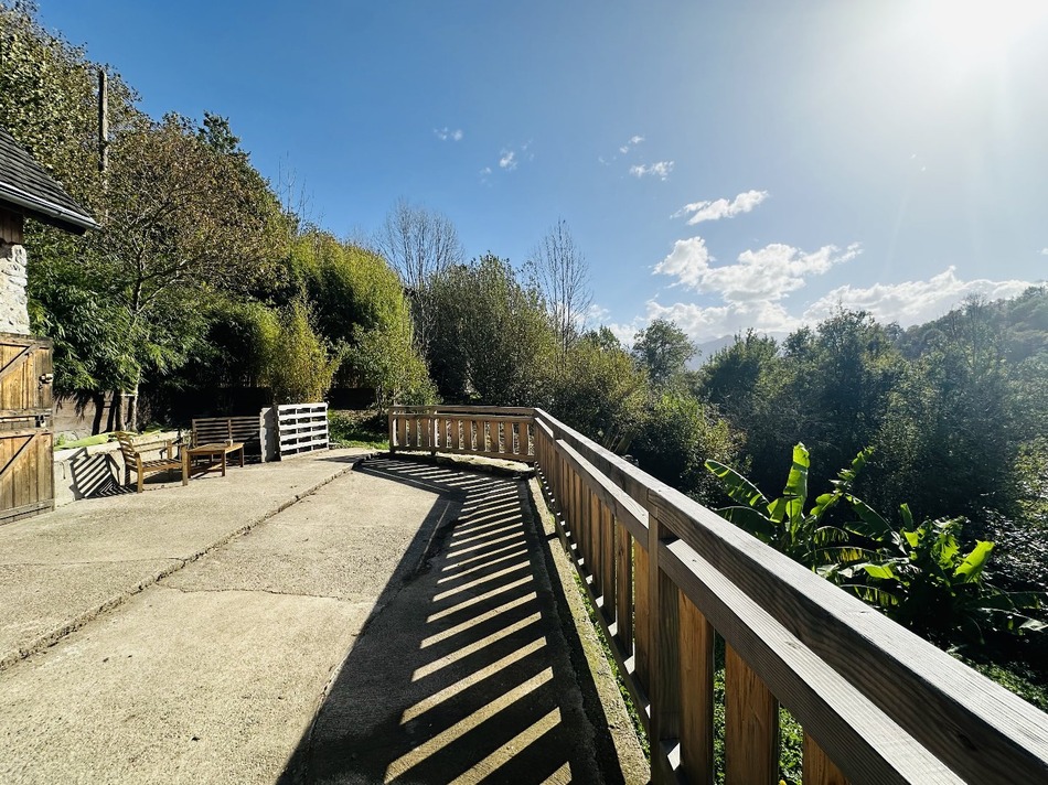 House of 75m² habitable with approximately 70m² of terrace facing South, located at the end of a hamlet at an altitude of 650m with a clear view of the mountains. Land of 2690m² arranged in terraces. Accessible by vehicle. Not overlooked, quiet, without nuisances 10mm from the Village of Seix. Information on the risks to which this property is exposed is available on the Georisques website: www.georisques.gouv.fr »