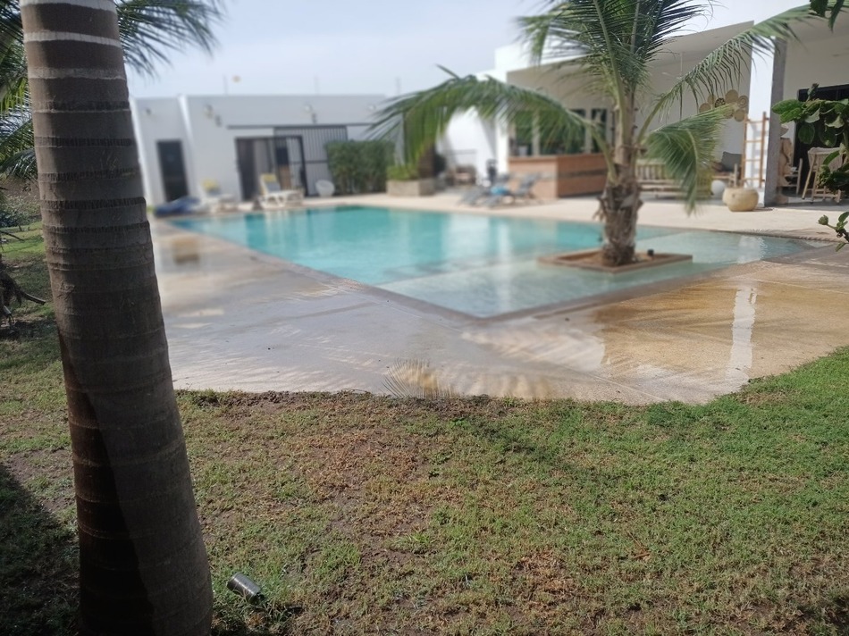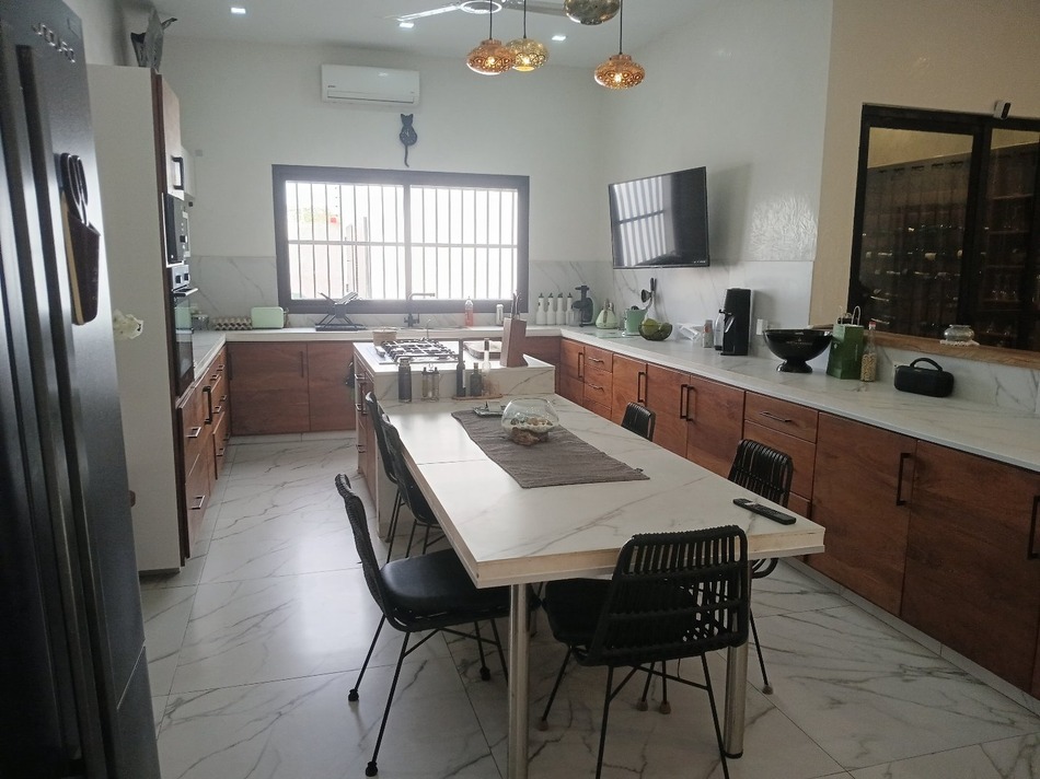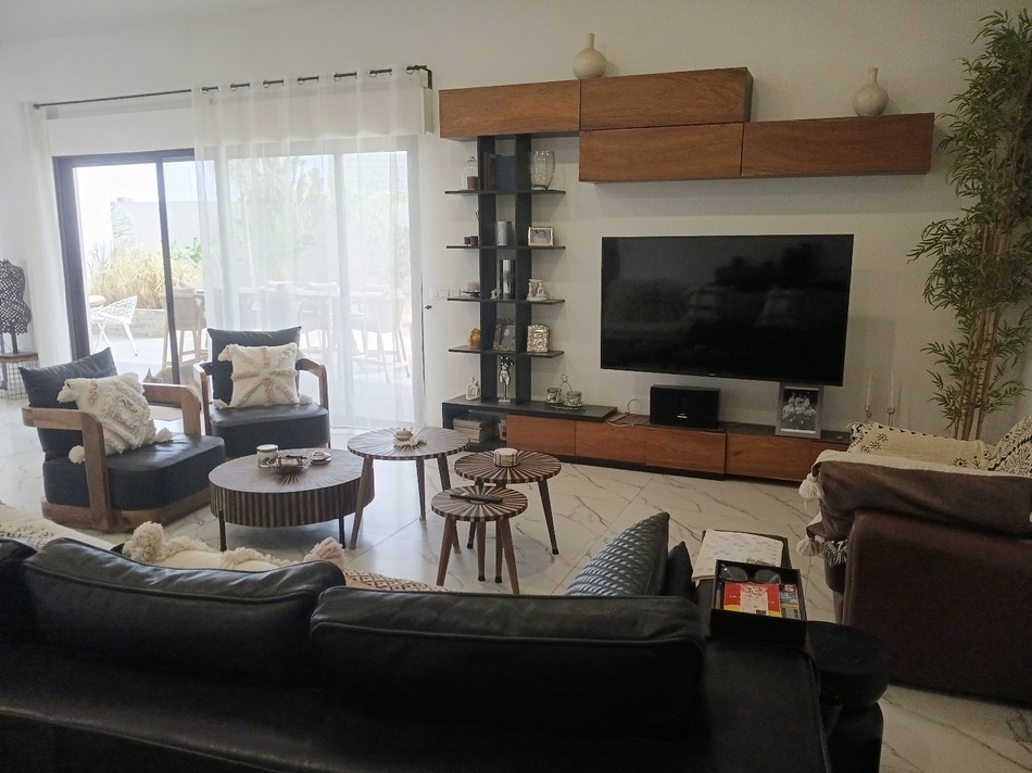 Villa état neuf de 320 m2 habitables composée de 6 chambres dont 1 indépendante et un studio aménagé . Batie par un constructeur reconnu . Chaque chambre a sa salle d'eau ( robinetterie de 1er choix importée ) et ses placards , la chambre parentale dispose d' un très grand dressing .Immense salon , séjour , salle à manger avec une belle cave à vins de 7 m2 . Une cuisine équipée avec ilot central et table de déjeuner + une 2ème cuisine équipée . Ameublement et décoration de grande qualité . Volets roulants éllectriques dans le salon et la chambre parentale . Climatisation dans toutes les pièces à vivre . AUTONOMIE SOLAIRE TOTALE ( y compris la climatisation) . Le terrain de 1400 m2 est arboré et engazonné . Arrosage automatique . Grande piscine à débordement de 15 m x 6 m à énergie solaire . 3 grands garages fermés . Forage , portail électrique