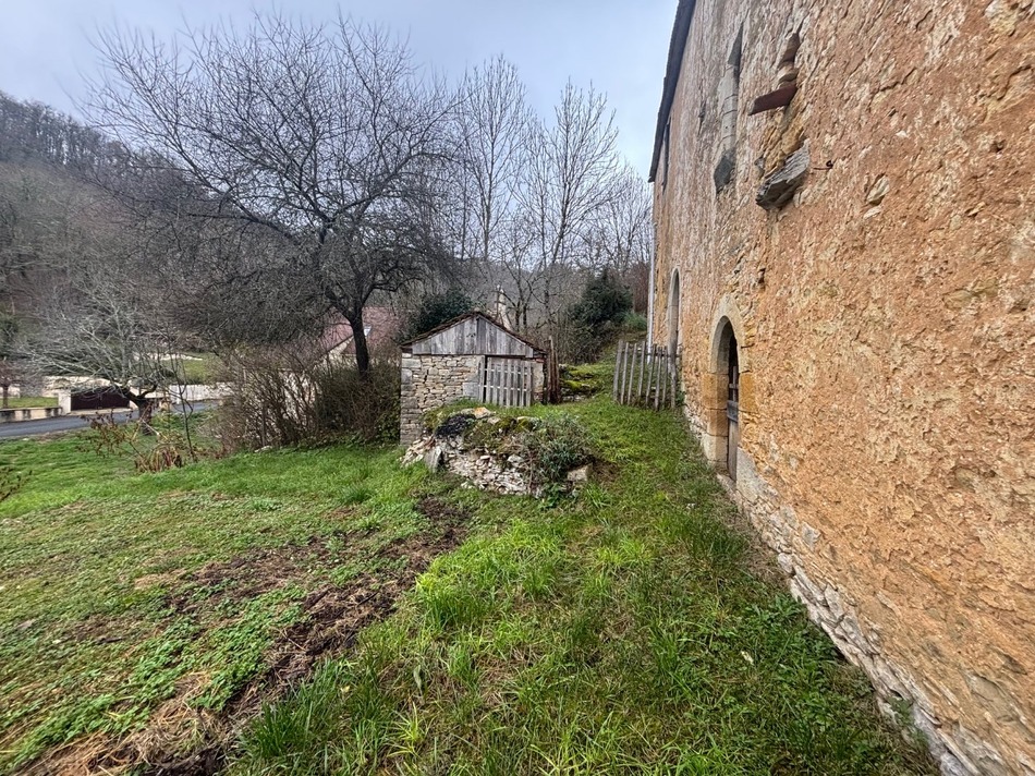 Stone complex dating from 1691 composed of two adjoining buildings with 78m2 of living space and 198m2 of usable space including 4 rooms, 4 cellars, 1 workshop and 1 chicken coop on unfenced land with a total surface area of 630m2. The complex is to be renovated and completely reorganized in order to revive the charm of this building on the heights of a small hamlet in the village of Concores located 12km from Gourdon and 30km from Cahors