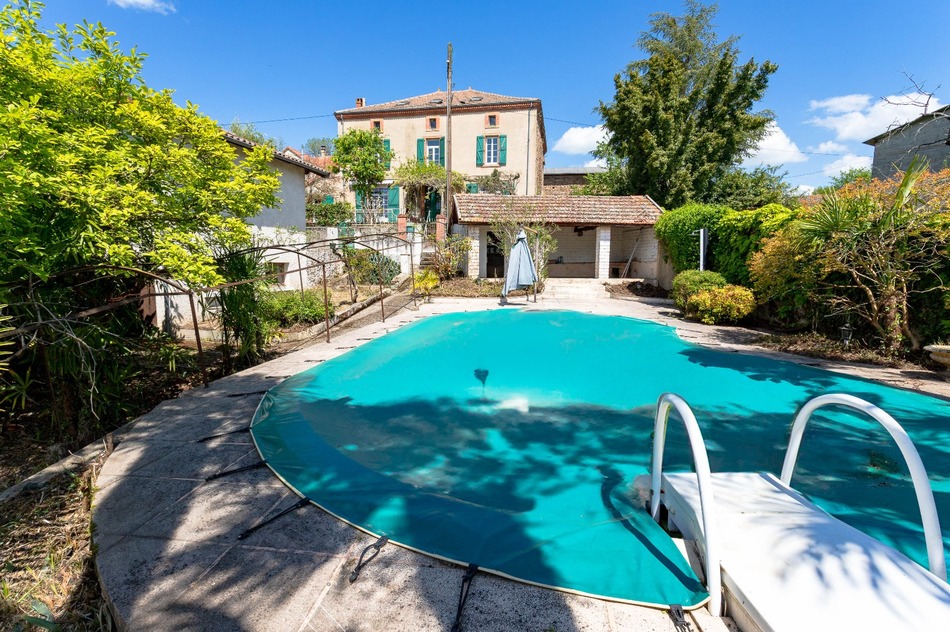 This charming, elegant 1820 house offers generous spaces, original details and impressively high ceilings. While some redecorating may be needed, the house has a solid structure and can be moved-into straight away. Heated by a central pellet boiler (Energy rating: D), it combines charm and comfort. Description The house spans three levels of 150 m² each: Ground floor: • Living room of 28 m² with double open doors to terrace. • Kitchen of 15.5 m² with an adjoining dining room of 29 m². • One bedroom, two bathrooms, a laundry room, WC, pantry, and a central hallway that provides access to the outside on both sides—ideal for adaptable use. First floor: • A large living space of 60 m². • Three bright bedrooms of 24 m², 21 m², and 17 m². • A bathroom and a central hallway. Convertible attic: The attic, with 150 m² of floor space and generous height, features 7 skylights and 3 front-facing windows, offering excellent potential for conversion. Amenities and Outdoors • Double-glazed PVC windows with wooden shutters. • Central pellet heating (Fröling boiler with a 7-ton silo, installed in 2011). • Electric water heater of 200 L (2016). • A 100 m² outbuilding attached to the house, housing the boiler, and offering numerous usage possibilities. The 2000 m² garden includes: • A landscaped yard with a swimming pool, pool house, and a well for irrigation. • Several terraces and seating areas, with breathtaking views of the Pyrenees on clear days. • A double garage with two rooms below. The entire property is in a constructible zone, making it possible to convert the outbuildings into additional living space. Location Situated the edge of a peaceful village, the house is ideally located: • 5 minutes from essential shops (pharmacy, bakery, grocery store, restaurants). • Primary school 3 km away, secondary schools within a 10-minute drive. • 15 minutes from Cordes-sur-Ciel, voted one of the most beautiful villages in France. • 20 minutes from Albi, a UNESCO World Heritage episcopal city. Potential Uses This property is perfect for: • A large family seeking space and comfort. • Creating a bed and breakfast, thanks to its strategic location and generous layout. • Combining residential and professional or business activities. If you are dreaming of a spacious home, move-in ready, peaceful yet not isolated, don't hesitate to contact us today to arrange a visit! We provide a full range of services to support your project: renovations, financing, and currency exchange assistance. Make your dream a reality today!