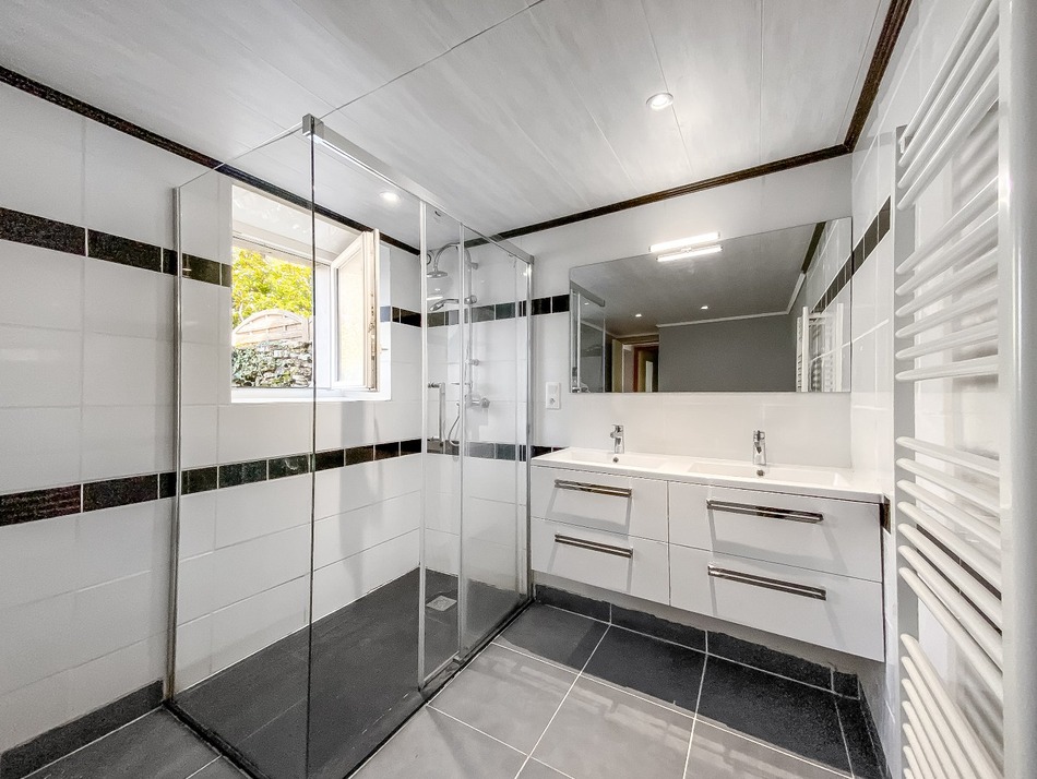 This terraced stone house, located on a large plot of land with an old well divided into a parking area large enough to accommodate a boat, a sunny terrace in front of the house and a vast garden, benefits from 'a privileged location on the beautiful Rhuys peninsula, 2 km from the picturesque town of Sarzeau and several fine sandy beaches and only 500 m away from Gulf of Morbihan. Its ground floor consists of a large living-dining room of 54 sqm adorned with a pretty stone fireplace, exposed stone walls and beautiful old beams, a large kitchen with a pantry, a bathroom used also as a laundry room and a toilet. Its first floor houses 4 bedrooms and a bathroom with a toilet and its second floor an attic of 50 around sqm. where one could easily create 2 further bedrooms and a bathroom with a toilet. Its stone outbuilding, which currently serves as a workshop, offers the additional potential of having, in addition to 6 bedrooms, an independent studio with its own garden. In addition, this property has the much sought-after advantage of being within walking distance of a large well-stocked supermarket, an old railway track converted into a cycle and hiking trail and an equestrian center. In view of its potential for having a large number of rooms which makes it ideal just as much as a main residence or holiday home for a large family as a rental investment and of its location in an absolutely calm area in spite ot being close to everything, this rare property deserves your full attention.