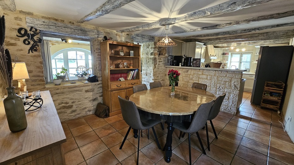In a peaceful and wooded corner of the Causse de Salvagnac-Cajarc, at the end of a typical Quercy area with around ten stone houses, come and enjoy the peace, the gentle way of life and nature in this green setting. The property is made up of a set of 2 completely independent family homes: The first, a 19th century stone house, completely renovated in the 2000s, offers, on the garden level, a beautiful living space living room-kitchen-lounge (with direct access to the garden) of 45 m² very functional and friendly as well as a laundry room and 2 shower rooms. Upstairs, 2 bedrooms, one of which is very bright with its bay windows and its view of the garden finally in the converted attic: a cozy and warm bedroom with cupboards to accommodate the little ones. The second house, completed in 2009, has an entrance leading to a large modern and functional kitchen of 15 m² and a living room of 30 m² - with access to the terrace - as well as a bedroom on one level. Upstairs, 4 bedrooms including a superb one of 29m² with a nice height under the eaves. 2 shower rooms and 2 toilets to accommodate family, friends and tenants. Indeed, everything has been arranged for a gite operation: private access to the 5m x 10m chlorine swimming pool, claustras to preserve the privacy of each house, furniture included in the sale... On the 2232 m² of land, a building built in 2014 develops 30 m² of double garage and 18m² of workshop. The 2 houses are perfectly maintained, like the heat pump installed in 2022 on the main house, the roof and insulation redone in 2024 on the bedroom with a view of the garden. A very beautiful ensemble, rare on the market for properties with potential for a gîte, in a quiet setting, but 12 minutes from the amenities of Cajarc. A natural and authentic environment made of stone walls less than 20 minutes from Villefranche de Rouergue. A superb opportunity, with no work to be done, for all profiles... family or professional.