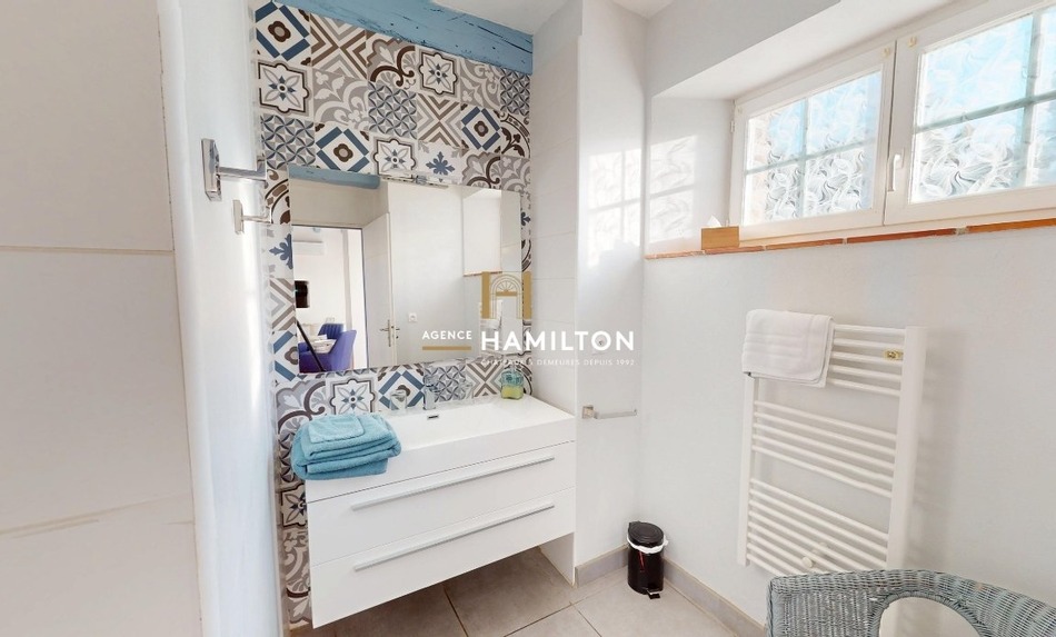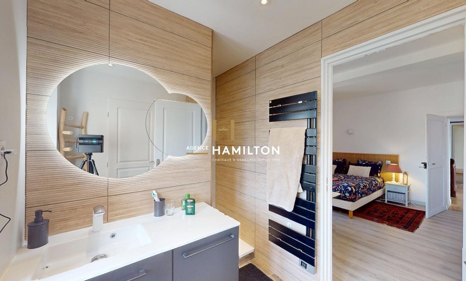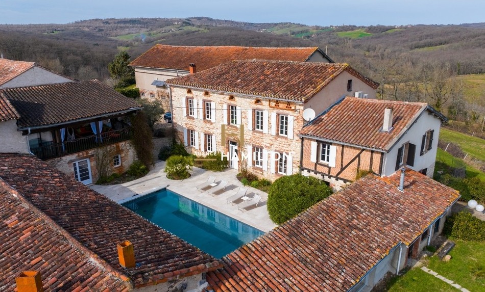 ALBI, TARN - Just 10 minutes from the centre of Albi, nestling in the Tarn countryside, come and discover this former farmhouse, carefully renovated and maintained. The property, which is run as a bed and breakfast, extends over an estate of more than 5 hectares, between forests and meadows. It comprises the owners' house, the guest house and a barn. These three buildings are arranged around two courtyards. Once through the gate, the first courtyard provides parking for several vehicles. The second courtyard, sheltered from view and laid out around the 11 x 5 metre heated swimming pool, includes a pool house with a pizza oven and a magnificent covered area for outdoor dining in fine weather. From this area, you can access a pleasant elevated terrace of around 47 m², with views over the estate and its surroundings. There is also an adjoining massage room. The owners' south-facing house, measuring around 219 m², includes a separate 55 m² two-storey section with its own private terrace. On the ground floor of the main house, to the left of the entrance hall, a large living room with wood-burning stove occupies around 47 m², including a kitchen opening onto the bright dining room. To the right, the 23 m² lounge, with its stone, wood and brick walls, offers a cosy space overlooking the courtyard with its swimming pool. A study, toilet and utility room complete this level. Upstairs, a large landing leads to a 44 m² master suite with dressing room, bathroom with shower, bath and separate toilet, as well as two other large bedrooms sharing a dressing room and shower room. The guest house, which can be used all year round, comprises a 77 m² living room with a wood-burning stove opening directly onto the courtyard and swimming pool. The sleeping area comprises four air-conditioned suites, ranging in size from 27 to 35 m². Each bedroom has its own unique features, with its own shower room and toilet. Two of them also have a private terrace facing south-west. The outbuildings include a garage and a generously-sized barn housing horse stalls, an old forge, a workshop and a space that was once a dwelling that could be converted. A magnificent farmhouse like you rarely see, with a pond home to frogs and salamanders in an unspoilt setting! Please contact us for any additional information. We look forward to hearing from you we're available when you are! VIRTUAL TOUR AVAILABLE Frederic Bastemeijer Hamilton Cordes-sur-Ciel, one of the Plus Beaux Villages de France All living spaces have recently been equipped with a heating system powered by two air-to-water heat pumps. The non-collective sanitation currently consists of two septic tanks with drainage.