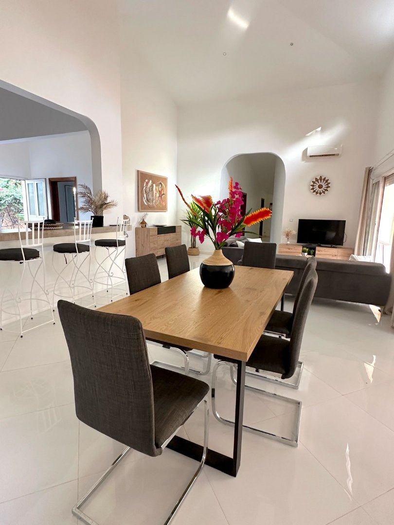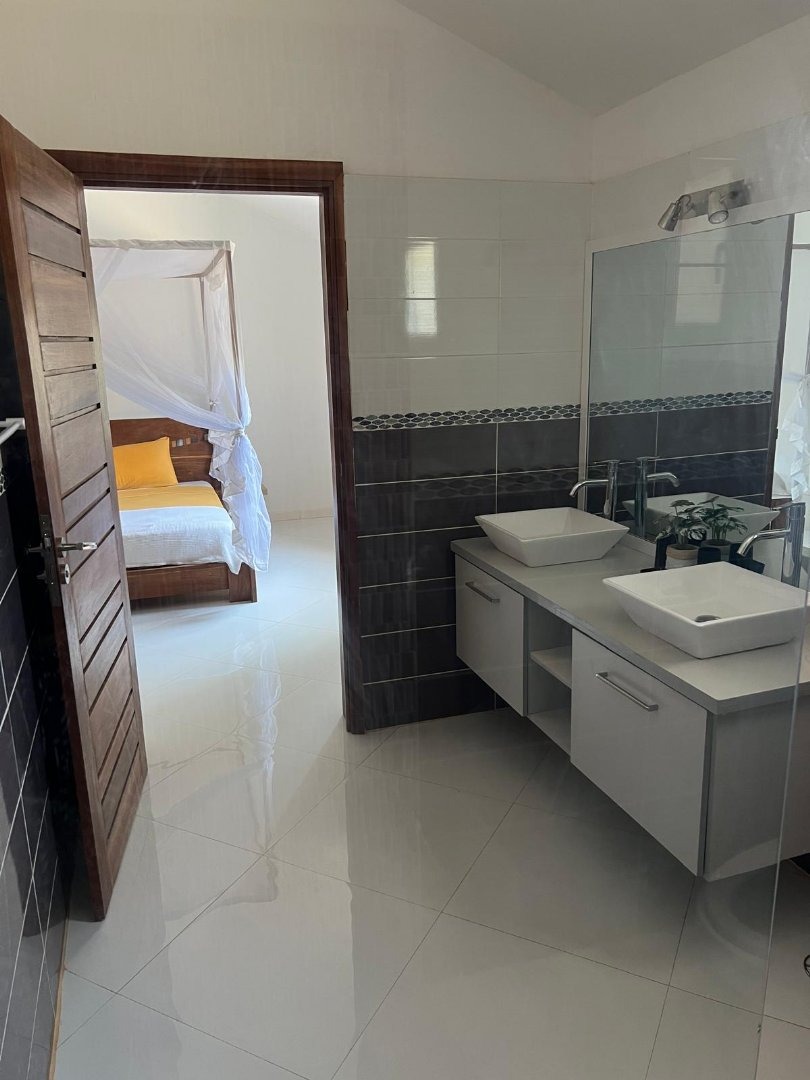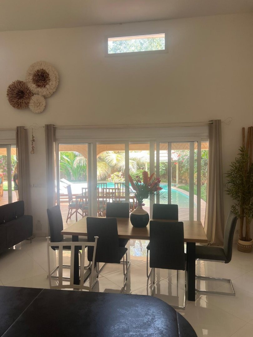 SELECTION SENEGAL vous propose cette magnifique villa de plain-pied qui vous séduira par son cadre paisible, son jardin luxuriant et ses prestations de qualité. Edifiée sur un terrain de 700m2, la propriété offre un super jardin tropical soigneusement aménagé, un véritble hâvre de paix, ou palmiers et végétation exotique entourent une belle piscine privée, idéale pour profiter pleinement du climat ensoleillé de la petite côte. La villa se compose de: 1 Salon lumineux offrant une vue imprenable et un accès direct sur le jardin et la piscine. 1 Cuisine entièrement équipée, fonctionelle et conviviale. 3 Chambres spacieuses,chacune disposant de sa salle de bain privative. 1 toilette visiteur. 1 Buanderie. Nichée dans une résidence calme, sécurisée et recherchée, cette villa garantie tranquilité, confort et sérénité au quotidien. Idéale pour une résidence principale, secondaire ou un investissement locatif, elle réunit tous les atouts pour vivre ou investir à Ngaparou dans un cadre privilégié. Possibilité d'acquérir dans la même résidence une villa de 4 chambres au prix de Fcfa Euros