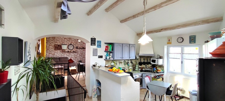 Located on the outskirts of Decazeville, this beautiful semi-detached house of 81m² of living space is set on a lovely wooded and enclosed plot of approximately 556m² and faces due south. Located on a quiet little street, access to this property is via a gate, allowing you to park your car in the outdoor courtyard or in a covered garage of 20m², connected to water and electricity. This beautiful house is entered through a small airlock where, on the right, there is a 5m² bathroom with a window, and on the left, a separate toilet of 1.5m². Opposite, bathed in light thanks in particular to a skylight, a hall provides access to the lower floor and the modern, equipped 18m² kitchen. In the extension, the living room, also very bright, offers a beautiful volume and allows for easy installation of a lounge and dining area. The advantage of this room is that the old flues have been preserved, and there is the possibility of adding a wood or pellet stove, for cozy evenings in perspective. The lower floor, which is accessed by a quarter-turn staircase, houses the sleeping area. Two pretty bedrooms are located here, each equipped with dressing rooms and access to the outside terrace, thanks to glass doors. Regarding the surfaces, one is 17m² and the other 12m², with, and this is very appreciable, an adjoining 3m² shower room with WC. The house is immediately habitable as is. The joinery is all double-glazed, equipped with wooden shutters. The heating is town gas with hot water circuit radiators, which facilitates a conversion to a more economical heating method (type air/water heat pump, etc.). The gas boiler also provides hot water production. The connection to the sewer system is perfectly compliant, no work is required. The DPE is in D. The house is located close to all amenities (shops, school, health, etc.), it is just waiting for you to visit it! You can take a virtual tour of this property using the link below: Information on the risks to which this property is exposed is available on the Georisques website: www.georisques.gouv.fr »
