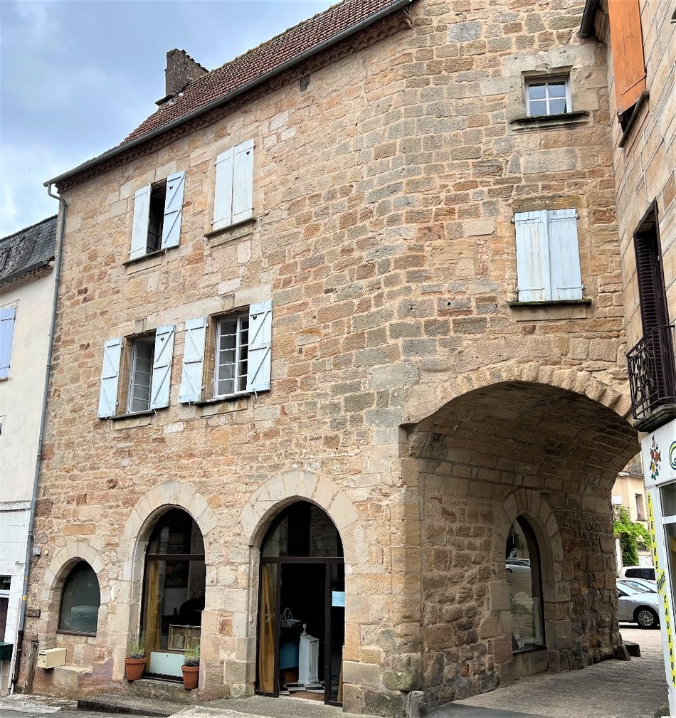 This small, characterful complex consists of a shop on the ground floor of the market hall and an apartment above it of approximately 120 m² spread over 3 levels served by a stone spiral staircase. It was originally a tower and a fortified city gate which was later transformed into a small residential house. A building known as the Arbol, this gate dates from the 13th century, the time of the construction of the Chateau. It was once part of the city walls. It was therefore integrated in the 15th century into a house whose main facade rises on the market square. A staircase tower rises at the rear. Its door is molded (its lintel surmounted by the characteristic brace of the ornamentation of this Renaissance period in Quercy). On the other side, the building overlooks the magnificent old market halls, a market place in the Middle Ages and the only building located outside the walls. It is therefore a period property with character and full of history. The heating is district heating (biomass), efficient and easily manageable. The accommodation includes a beautiful living room, a kitchen and 4 bedrooms. The shop of almost 45 m² approx. on the ground floor on the market hall side allows for a suitable project. The meters between the accommodation and the shop are separate. Atypical and characterful property in a village with all amenities, located on the Rocamadour variant of the Way of St. James. Information on the risks to which this property is exposed is available on the Georisques website: www.georisques.gouv.fr