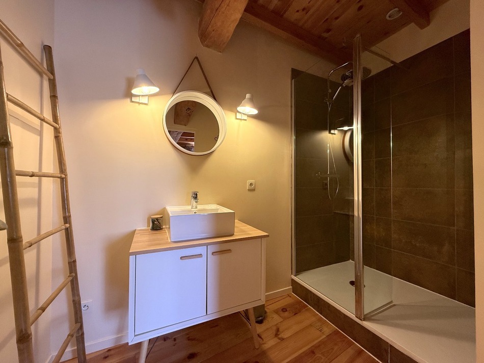 On the edge of a small hamlet, which flourishes in the Dronne Valley, between Dordogne and Charente, multiplying the charms of a region with an undeniable quality of life, with views to the horizon, is this property of seven bedrooms / seven bathrooms, ideal for welcoming guests, looking for a relaxing stay in peace around the heated swimming pool. In addition, this property offers a large recent hangar of 300 m2 (25/12m), with a metal structure and its recent roof, ideal for a craftsman, car storage, etc. Habitable and immediately usable, everything is in good condition, central heating with pellets and pellet stove, underfloor heating in the living room, 200 liter thermodynamic water heater, PVC frames, double glazing, compliant sanitation. Situated on a beautiful 4900 m² plot of land, facing south, with two covered terraces around the entrance courtyard, one with a bread oven to restore, the other with a kitchenette. A property in a superb tourist region, which will appeal to a couple looking for an income from renting out the rooms, in combination with a job where the large shed is an undeniable tool.