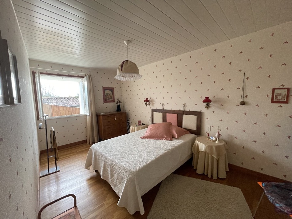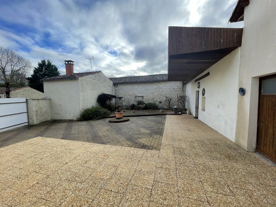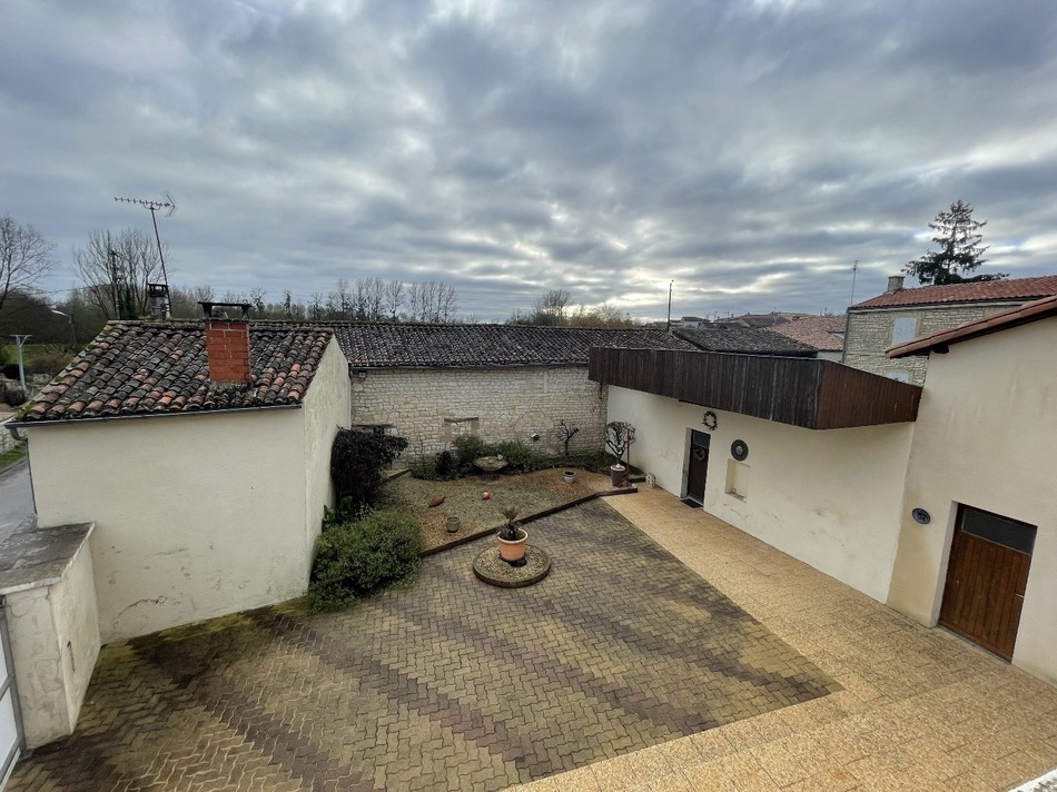 In a quiet village and only 10 km from Aulnay-de-Saintonge, this property benefits from easy to maintain grounds and a large garage. Ground floor: An entrance / office, a toilet, a living room and dining room with fireplace and insert, a fitted and equipped kitchen, a bathroom with bath, shower cubicle and washbasin, a back kitchen with sink and plumbing for a washing machine. There is a door leading to the garage. You can also access the garage from the street with an electric door. Water softener. 1ST FLOOR: A landing and a hallway, 4 beautiful bedrooms with original parquet floors in very good condition. There are 2 outbuildings attached to the house - possibility to extend the house or make a workshop. Small courtyard with gate. Oil fired central heating. VIRTUAL TOURS AND VIDEOS AVAILABLE ON REQUEST!!!