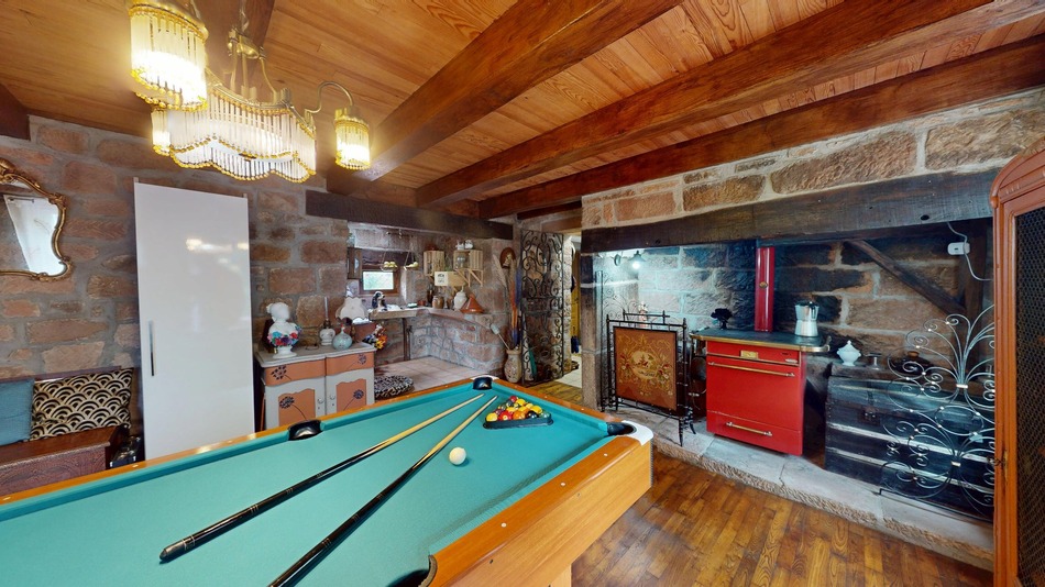 Secluded, sunny, unique, and rare! Located in Nauviale, just 7 minutes from Saint-Cyprien, 12 minutes from Marcillac, and 30 minutes from Rodez, discover this property nestled in the heart of a wooded park of over 4.7 hectares. A true haven of peace where tranquility, space, and authenticity come together. A unique living environment. This 220 m² family home, facing south, combines modern comfort with old-world charm: exposed beams, a scullery, generous proportions Every detail testifies to the authentic character of this rare residence in the area. Bright and welcoming living spaces. Main ground floor: entrance porch, majestic dining room of approximately 47 m² with a cathedral ceiling, cozy living room of approximately 15 m², kitchen of approximately 12.5 m² opening directly onto the terrace and swimming pool. A second authentic living room: approximately 29 sq m with its fireplace and scullery, a ground-floor bedroom of approximately 15 sq m, a 6 sq m dressing room, and an approximately 8 sq m bathroom. Mezzanine: a room of approximately 28 sq m that could accommodate a bedroom, office space, and a toilet. Upstairs: two attic bedrooms, a shower room with toilet, and a room that can be converted to suit your needs. Basement: two cellars, a garage, a boiler room, and a workshop. Relaxation and leisure: Enjoy the Desjoyaux indoor swimming pool (8 x 4 m) with its terrace and barbecue area, perfect for convivial moments with family and friends. Comfort and amenities: Heating via cast iron radiators and two heat pumps installed in 2021 double glazing throughout wastewater treatment via a recently installed micro-station (2021) slate roof in perfect condition barn converted for one vehicle and the possibility of keeping animals on a 3,000 m² plot. This property is a rare opportunity for those seeking peace, space, and authenticity in a preserved natural environment. Energy Performance Certificate (EPC): C. Virtual tour available on our website. Information on the risks to which this property is exposed is available on the Georisques website: www.georisques.gouv.fr