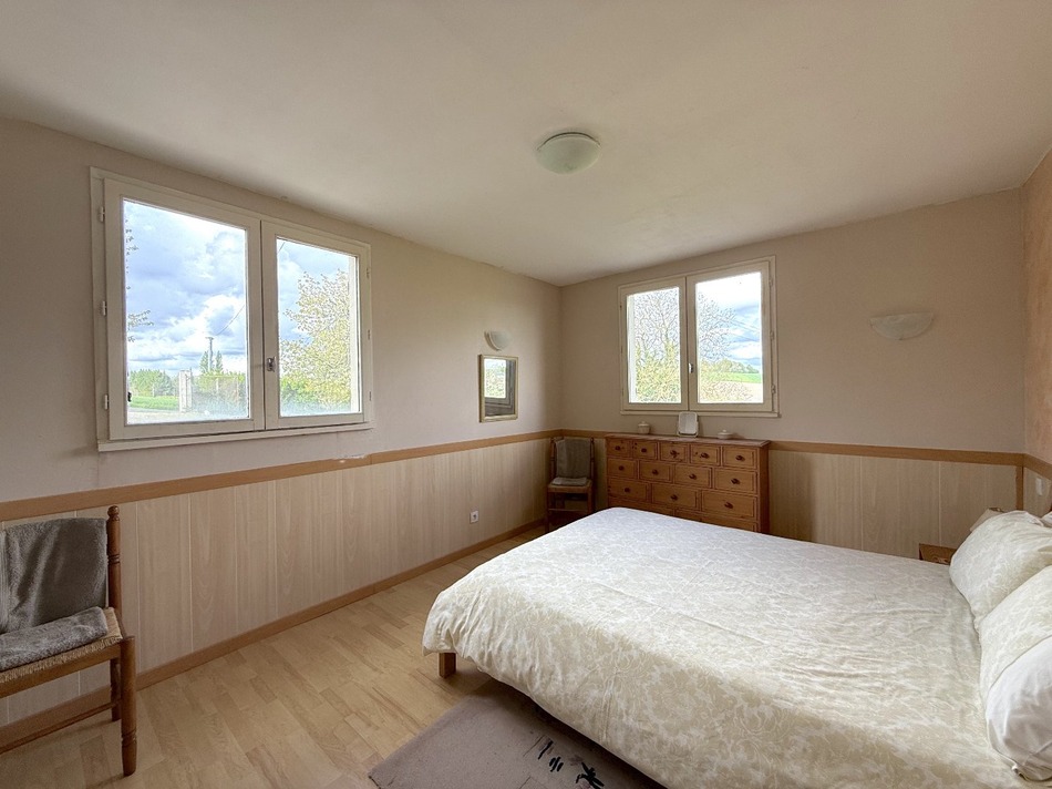 Situated in an elevated position, in the middle of its almost 4000 m2 fully fenced park, with no close neighbors, and 360° views over fields and meadows, this house (built in 1970) offers a peaceful life in a quiet and privileged environment. The 180 m2 of living space comfortably consists of 5 bedrooms (including 3 on the ground floor), two bathrooms/shower rooms, two living rooms, two dining rooms and a beautiful kitchen, with direct access to the terrace, a laundry room and three toilets. A cellar under the house, a separate garage, a wood shed and a small workshop add to the comfort of this beautiful house. The same goes for compliant sanitation, double glazing, oil central heating and an insulated roof. The whole is in very good condition, well maintained by the current owners for 20 years. Ready to move in, a real favorite at a more than reasonable price. Beautiful, welcoming, historic, and peaceful rural setting just 20 km from Angoulême and surrounded by interesting towns like Villebois-Lavalette and Montmoreau.