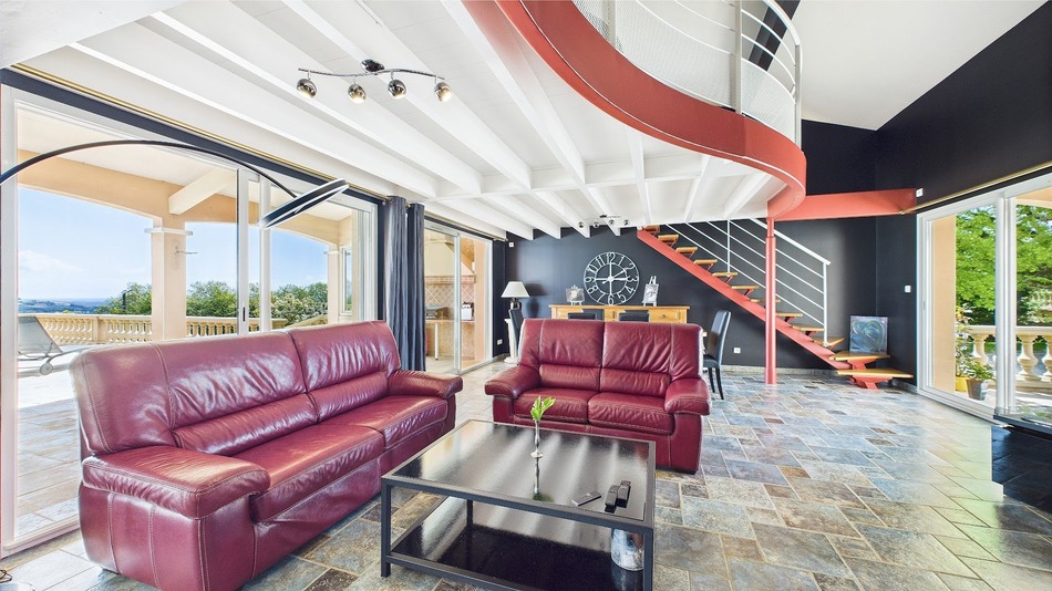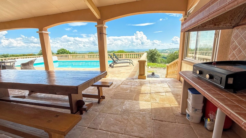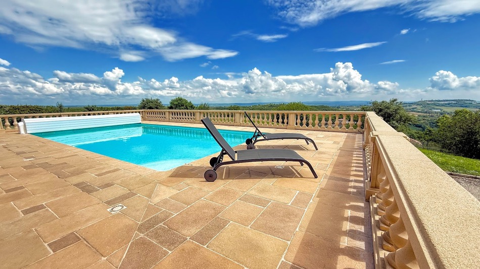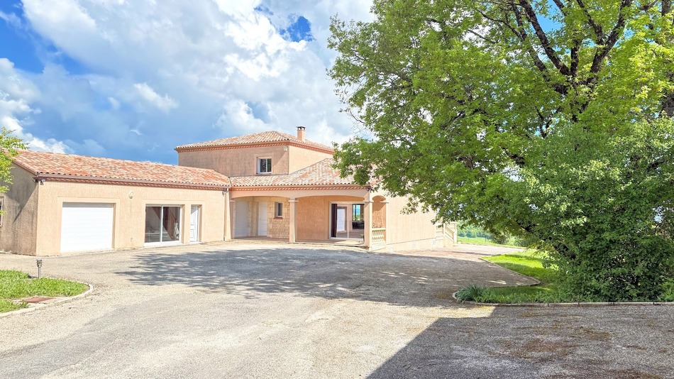 Located in Southwest France's gourmet region and renowned AOC wine country Discover this rare gem of 250 m² of living space, set on a 5,822 m² fully fenced plot, offering exceptional panoramic views stretching over 30 km across the rolling Quercy hills. Nestled in a charming and sought-after village, just a 1-minute walk from local shops and amenities, the property guarantees total peace and privacy no overlooking neighbours. Move-in ready, with no renovation needed and high-end finishes throughout. Quick access to the motorway and only 1 hour from Toulouse-Blagnac International Airport. Located in the heart of Southwest France's gastronomic paradise, surrounded by prestigious AOC wine vineyards and local markets. Highlights: 6 spacious, bright bedrooms Independent guest house (gîte) + potential for a second gîte in the 72 m² garage (with 13 m² terrace and mezzanine) Stunning cathedral-style 360° living room with a suspended fireplace, flooded with light and fully open to the panoramic landscape Large, welcoming terrace with summer kitchen perfect for entertaining Heated 5×10 m pool with open countryside views 200 m² of outdoor spaces: terraces and balconies Large laundry room for added convenience Geothermal underfloor heating, premium features throughout Fibre-optic internet for high-speed connection Home office ideal for remote working or professional use Annexes: 25 m² cellar and 25 m² workshop Built by a renowned local craftsman Zero renovation needed in impeccable condition Quick motorway access and 1 hour from Toulouse International Airport In the heart of a gourmet region and famous AOC wine-producing area Comprehensive sales file available on request: over 100 photos, detailed floor plans, and an immersive 360° virtual tour. Enjoy the rare privilege of wide, open views and total tranquillity all while embracing the vibrant village life in one of Southwest France's most desirable wine and gastronomy regions.