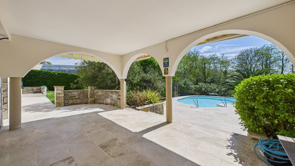 Located in the heart of the village of Arbonne, this 270 m² three-story house enjoys an exceptionally quiet setting, with no overlooked views, and close to amenities. The main level features a spacious, bright living room, extended by a beautiful veranda with unobstructed views of the trees. A large, separate kitchen, adjoining the living room, can easily be opened to create a large, welcoming living area if desired. Three bedrooms with fitted wardrobes and a bathroom complete this floor. On the upper floor, you'll find four additional bedrooms, a second bathroom, and plenty of storage space, ideal for a large family. The garden level offers a second living room opening onto a large terrace, a kitchen, two bedrooms, and a spacious laundry room. This space, both functional and independent, can serve as an ideal outbuilding to accommodate family, friends, or for seasonal rentals. Thanks to its location on the ground floor, it is very pleasantly cool in summer. Outside, you will find a magnificent swimming pool with panoramic views of the greenery, an outdoor terrace and a covered terrace, as well as two large garages. Finally, a private pediment for Basque pelota enthusiasts will accompany you on a daily basis. The assets: Generous volumes Unobstructed view of nature, not overlooked Peaceful and green environment Immediate proximity to amenities Double garage Quiet Little work required A rare house in this area, which combines calm, space and potential. Discover without delay with Selection Ocean!