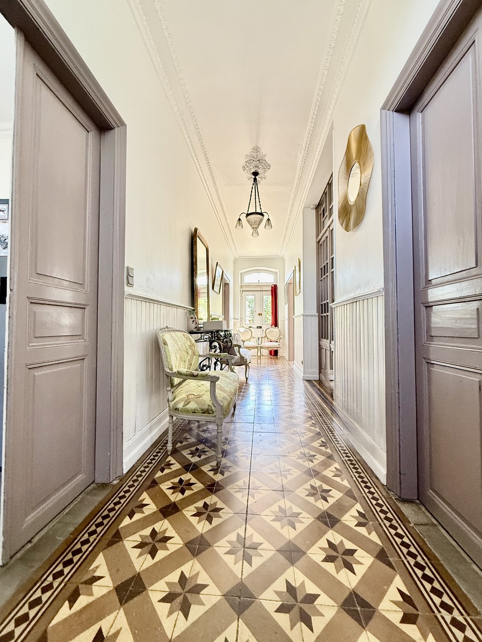 19th Century Mansion Elegance, Space, and Authenticity 20 minutes from LEZIGNAN CORBIERES Located in a charming village just east of Carcassonne, this superb 19th-century mansion has been carefully renovated, retaining all its original character: high ceilings, refined moldings, period marble fireplaces, etc. Spacious and bright, it extends over three levels and offers an ideal layout for a large family or second vacation home. It includes nine bedrooms in total: two on the garden level (including a master suite), three on the first floor, and four on the second. The living room, bathed in light, opens onto a modern kitchen and offers a beautiful view of the wooded garden. Outside, you will discover an enclosed garden, not overlooked, which invites relaxation. The secure swimming pool (10.5 x 4.5 m depth 1.80 m) promises beautiful sunny moments in a peaceful and green setting. Combining old-world charm and modern comfort, this rare French-style property benefits from a privileged location, close to amenities and major tourist sites in the region. An exceptional property currently operated as gites generating excellent income. Discover without delay! Information on the risks to which this property is exposed is available on the Georisques website: www.georisques.gouv.fr »