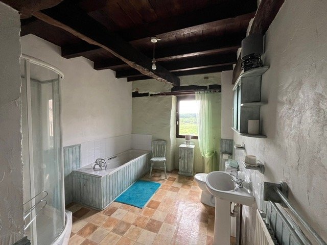 Rare opportunity to acquire a 35 acres freehold farm in a beautiful environment. This 14 hectare (35 acres) farm is set on the edge of a small rural hamlet between Rochechouart and Vayres in the beautiful Perigord Limousin Regional National Park and benefits from glorious views of the attractive surrounding countryside. The farm comprises a large 5 bedroomed farmhouse, a huge stone barn, 2 open hangars, commercial area comprising a butchery preparation area with walk-in cold fridge store and shop, various small farm outbuildings and above ground swimming pool. Up until recently this was a working farm raising beef cattle, sheep, poultry and pigs and selling products direct to clients from the farm shop. The land was mainly used for grazing but there is a small parcel of woodland and a parcel of land for growing crops. The land is mainly fenced and could be used for a variety of projects, ideal for horses or alpacas for example. The main farmhouse offers in excess of 300m2 of versatile living accommodation over 2 floors. On the ground floor there is a large kitchen with a pantry, utility room, shower room, 2 spacious lounges, a second kitchen, bathroom and toilet. On the first floor there are 4 good sized bedrooms, 2 bathrooms and an impressive master suite comprising a spacious 5th bedroom with dressing room and bathroom. The layout of the house and the ease of access to the various rooms means that either the house can be used for a large family home or for offering letting rooms on a bed and breakfast basis or could be separated into 2 units and rented out as a gite. The farmhouse has been renovated however many of the original features have been preserved and the house feels very authentic. There are lovely wooden floors, beams, stone flagged floors, wooden doors, fireplaces etc. In addition to one side of the farmhouse there are the commercial rooms previously used as a meat preparation area with walkin cold room and shop - there are rooms above this commercial area that could also be renovated. Depending on your project these rooms could easily be transformed into accommodation to provide a further gite. The house is on a septic tank and is connected to mains water and electricity. The house has recently been insulated to a good standard. The windows are mainly double glazed. Several of the rooms have attractive fireplaces with wood burning stoves one of which has a back boiler that runs both the central heating system and hot water if you wish, making it an economical house to heat. Despite being in a rural location there is good internet connectivity. The courtyard and garden area have lovely views looking over the surrounding countryside, a truly lovely spot to relax and enjoy a cup of tea or glass of wine. There is a large collection of outbuildings clustered around the farm house. The huge stone barn is in good condition. All the outbuildings have been properly maintained and are in a good condition. This property is located within a few minutes drive of Oradour sur Vayres and Rochechouart where there is a good range of amenities including supermarkets, restaurants, bars, schools, doctors etc. Limoges international airport is approximately a 40 minute drive.