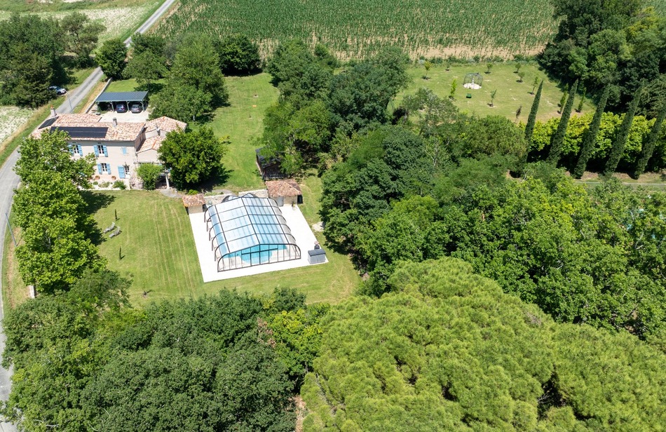 SOLE AGENT On a small promontory overlooking the Gers countryside, this traditional old house has been completely renovated, surrounded by a beautiful mature garden. It features an indoor swimming pool. Located in a quiet setting and enjoying lovely unobstructed views of the Gers countryside, the house is immediately habitable and requires no major renovations. The living rooms and one bedroom are on the ground floor. Two additional bedrooms are located on the first floor on one side of the building. The three bedrooms are spacious, each with a small dressing room and private bathroom/toilet. There is an additional guest toilet on the ground floor. The large, fully fitted and equipped kitchen and dining room open onto a charming, shaded south-facing terrace. Above, a small mezzanine is used as an office. The utility room offers plenty of storage and is used as a small laundry room. The living room, the central room of the house, is cozy, with a beautiful fireplace and windows on both sides, providing ample light. The property is pleasantly laid out. The renovation is of high quality. Heating by heat pump. Solar panels. Individual drainage. Carport for 3 cars. Partially enclosed grounds. One of the highlights of this property is the large heated and covered swimming pool, which allows for use outside of the hottest and sunniest periods, when the side walls can be raised. The proximity of Condom, La Romieu, and Nérac, in this sought-after geographical area, is attractive. Access to major transport routes is nearby. A VISIT IS A MUST TO APPRECIATE THE QUALITIES OF THIS PROPERTY. FOR FURTHER INFORMATION AND/OR REQUEST FOR A VISIT PLEASE