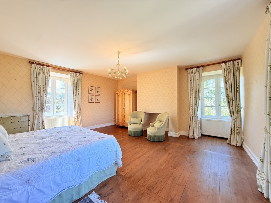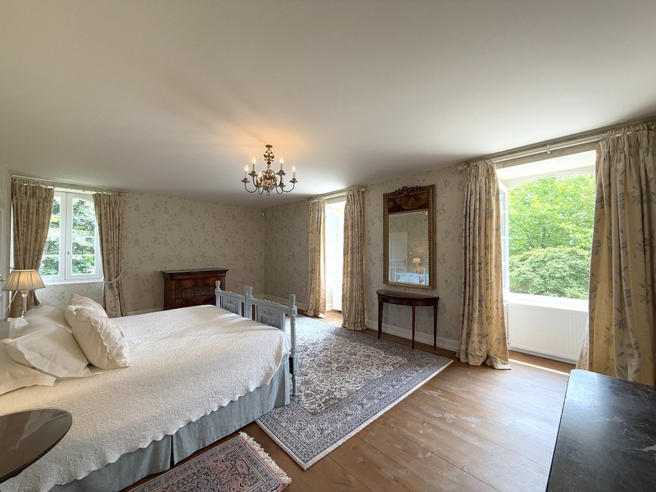 At the end of a cul-de-sac, a superb 15.7-hectare estate, where behind an electric gate, the noble 16th-century manor proudly sits around a reception courtyard with its two outbuildings, next to a fountain fed by a spring. The property, renovated over the last 12 years, seeking quality craftsmanship while enhancing the soul of the place, radiates authenticity, intimacy, prestige, the grandeur of yesteryear, quality of life.... On three floors, this grandiose residence has 4 large bedrooms, 2 on each floor, 3 modern bathrooms, a spacious, fully equipped kitchen with dining area, and a bright living room with a beautiful fireplace. Large French windows provide direct access to the sunny terrace with distant views of the park and meadows. In a beautiful location overlooking its corner of the park, the large 12/6m swimming pool is heated by a heat pump, ensuring optimal comfort all year round. A lovely stone pool house, with underfloor heating, also serves as a pool technical room. The large barn, in very good condition and well-maintained, is clearly very practical and prestigious, fully contributing to the noble character of this property. Hidden and surrounded by a few trees, the pond with its pontoon is a true haven of peace in this little Périgord paradise. A superb period property, easy to manage and ready to move into, with an undeniable noble character for a family where it is very pleasant to live in complete tranquility, in complete privacy amidst its own meadows and woods.