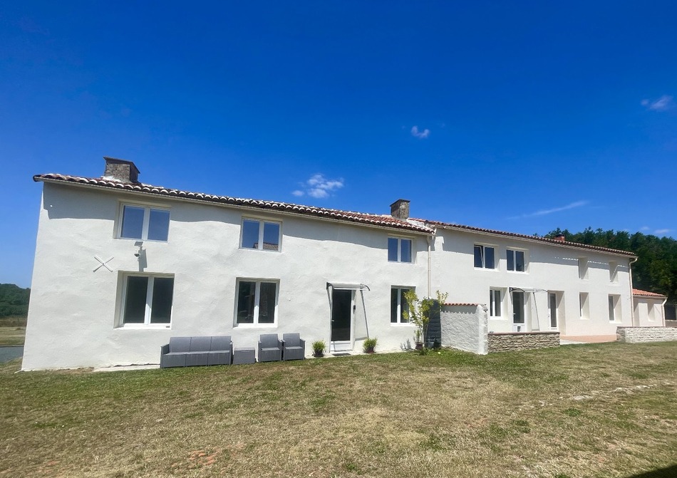 Rare on the market this impressive detached property has been renovated to an excellent standard and has NO ANOMOLIES at all. With stunning views over open countryside and over 7400 m² of land, you are assured tranquillity with no close neighbours. Just 5 km from Néré with bakery, pharmacy and primary school and only 7 km from the historic market town of Aulnay -de- Saintonge where you will find an Intermarché supermarket, bars, restaurants, schools, vet etc and a twice weekly market. The house has 4 bedrooms and comprises a 3 bedroomed gite which can communicate with the house is needed. Rooms are spacious and light and with over 320 m² living space this would make an ideal family home. Outbuildings include a vast barn of 60 m², a workshop and a carport with electric charging station. Thanks to comprehensive insulation and double glazing throughout, the house boasts a C rating for energy. Drainage system and electrics conforms to current standards. Videos available