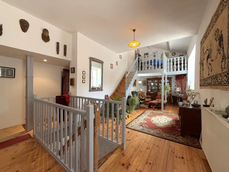 The center of Angoulême is only 25 minutes away, the baker and butcher are 2 km away, the lively village with its local producers' market is 1 km away, a 15th century castle as a neighbor across the street... A great opportunity to acquire an exceptional property in an exceptional location very close to Angoulême. Formerly belonging to the castle, this semi-detached property of 270 m2 on two levels offers 5 bedrooms, one with its own bathroom, a shower room, a living room, an office on a mezzanine, a theater room of 146 m2, including the beautiful equipped kitchen and a second living room with a fireplace and its Godin stove, which opens onto the walled garden with terrace. In the garden is a first beautiful outbuilding with a well, the laundry room and the boiler room. The second outbuilding, a stone building extending from the main house, houses the garage, a storage room with an authentic bread oven. The double-glazed windows, oil-fired central heating, roofing, plumbing and electricity, and the conversion of the outbuildings, etc., were all part of a complete renovation in 2005. For a family looking for a spacious home in the middle of a historic location, this property is unique and perfect, as a main residence but also as a holiday home!!