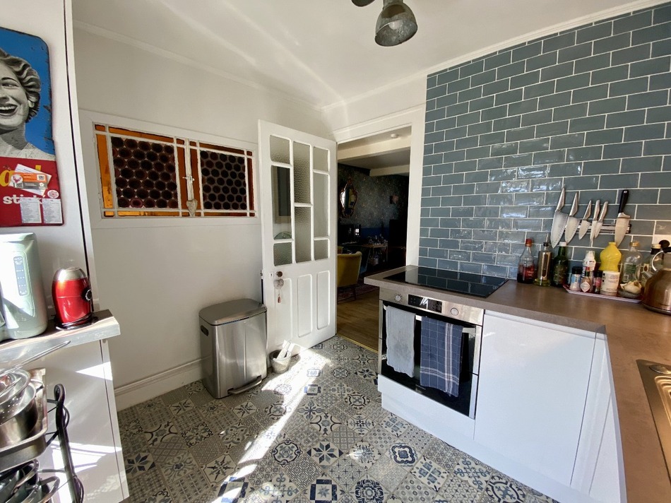 Built in 1850, this distinctive townhouse is situated in the historic part of Montmoreau, just outside the château grounds, renovated throughout in 2020/21, and is ready to move into. Decorated in a maximalist style! As you walk into the front door, which is alongside the garage frontage, there is a 12m2 hallway leading to the stairs, which take you up into the 26m2 lounge area, this level has been laid out to maximalise the light that crosses the building from front to back, giving the open plan lounge/dining area the feel of a Parisian apartment overlooking the square with 2 mature plane trees. This is a peaceful area, with the roads only really being used during rush hour for a short period. There is an understairs pantry on this level, next to the 6.5m2 kitchen. The kitchen is fully equipped with Induction hob, split oven, fridge/freezer, and a full-size dishwasher. The kitchen leads out to the 12m2 raised terrace, with steps down to the garden with a graveled seating area and pond. Private and tranquil, the terrace and garden chairs offer lovely sunspots. . Moving up the stairs in the house, on the second floor, there are two bedrooms, 16m2 and 7.8m2 (the smaller one is currently used as an office), a WC with integral handbasin, and a 5.5m2 bathroom with a sink, bath/shower and suspended WC. On the third and final floor there is a 26m2 bedroom with a dressing area (of 4.8m2) which extends across the depth of the house, with a cathedral ceiling, and original oak beams, this room is a real wow upon entering. Back to the ground floor, the garage has been shortened, and the back part has been partially raised to create a much-needed 17m2 utility space housing a sink unit, washing machine, hot water boiler and the heat pump it also offers a large amount of storage space, and access to the garden. The front half of the garage (now 12m2) is large enough to take a small car, giving you your own parking space if required. There is also on street parking directly in front of the house. Heating is by Pompe à Chaleur (heat pump) Installed in 2023, mains drainage, all electrics were replaced in 2021, double glazed windows, fiber optics. Montmoreau is a convenient town with all amenities, a trainstation and schools that cater for children up to age 15. At 25 minutes from the TGV of Angoulême and at 1h30 from the airports from Bordeaux and Bergerac. This townhouse can be utilised as a family home, great for a business couple, or a lock up and leave holiday residence. Ready to move into, this house will not stay on the market for long!