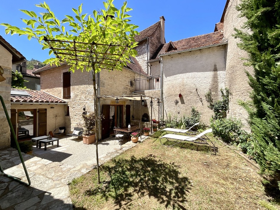 We are proud to present an exceptional residence in the historic village of Cajarc: here is a charming authentic house and its independent annex entirely renovated with taste and quality in 2005. On a plot of 210m2, you will benefit from a bright little flower garden of more than 80m², with a shaded terrace, SPA corner and a pretty patio facing East for sunny breakfasts. Inside, the bright entrance takes you, at your choice, to a cozy relaxation lounge above which a bedroom with private shower room and toilet welcomes you in the attic or to a large living room-kitchen, on 28m², opening onto the terrace and the garden. Very functional, this living space has a wood stove to naturally heat winter family meals. Upstairs, a landing room - arranged as a cozy open office - leads you to a second bedroom and a bathroom with toilet, or invites you to go up to the converted attic, to two other equally cozy bedrooms. Finally, from the garden, a staircase takes you to a beautiful tiled terrace with its wrought iron railing. You are already in the small 19m² outbuilding, optimized to accommodate family, friends, or visiting guests since 2019, in a living room-kitchenette and 1 master bedroom with shower room and toilet. Everything has been renovated to guarantee comfort, warmth, authenticity, and well-being inside and out. A precious stone in a medieval setting.