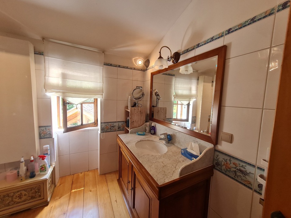 Property at the gates of Lectoure, in the heart of Lomagne Gersoise nicknamed the little French Tuscany. Discover a haven of peace, nestled in a green setting and sheltered from prying eyes. This stone property from the 19000s is surrounded by vast fields cultivated using organic farming, offering an idyllic living environment on a plot of 1Ha. The house, with a total surface area of 500 m², has been partially renovated. Renovated part (185 m²) Ground floor: Living room (60 m²): Kitchen: integrated in oak and burr walnut, worktops and double sink in natural Charente stone. Unique earthenware and wall fresco, created by a craftsman from Salernes. Equipment: Godin Grande Chatelaine cooker (3 gas burners, 1 electric hob, giant oven and grill), Novy silent extractor hood. Living/Dining room: Terra Cotta tiles with a rosette fresco on the floor. Fireplace with 13 Kw insert, capable of heating the entire house. Scullery (10-12 m²): Equipment: WC, 2 Atlantic electric water heaters of 300 L (one less than 5 years old, the other new), a loop circulator on clock for instant hot water, electrical panel, home automation, alarm and VMC group. Modular room (25 m²): tube chimney flue and operational for the installation of a stove. Upstairs: Bedrooms: one of 35 m² with large dressing room and another of 25 m². Bathroom: whirlpool bath with waterfall and hydromassage jets with recycled water, custom-made cherry wood and marble vanity unit. Joinery: Entrance and connecting doors: French oak. Interior doors: custom-made in French pink pine. Windows: double-glazed oak. Shutters: French cedar with burglar-proof bars. Part to be renovated (2 x 130 m²) Structure: insulated concrete slab on the ground floor, with electrical conduits, water inlets (hot and cold) and drains in place. Upper floor: 9-meter span load-bearing beams, finished flat. Roof: completely redone with insulation and exposed framework. Openings: French cedar shutters with security bars already installed. Exceptional outdoor space for unforgettable moments Take full advantage of the mild Gers evenings thanks to a vast terrace decorated with a covered structure, specially designed for your dinners with family and friends, sheltered from the sun and bad weather. This privileged outdoor space promises moments of conviviality and relaxation, in perfect harmony with the surrounding nature. Information on the risks to which this property is exposed is available on the Georisques website: www.georisques.gouv.fr »