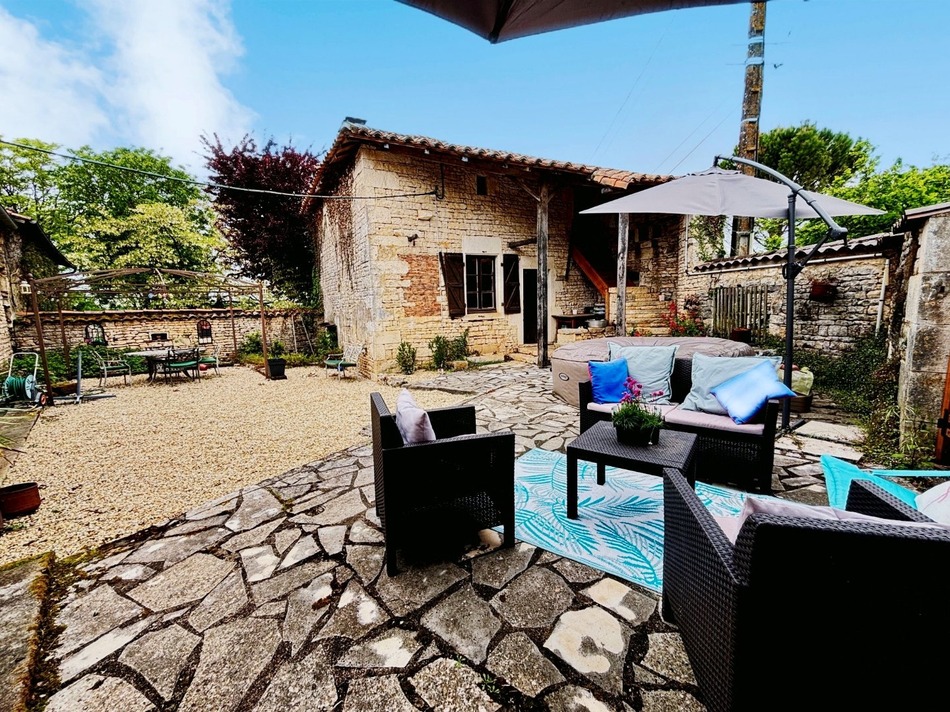 This beautiful stone property offers the perfect blend of quiet rural living and easy access to everyday amenities. The main house is comprised of on the ground floor, an entrance hall, a spacious ground-floor bedroom, a good-sized living room with a wood-burning stove, and a large family kitchen/diner with a rear door straight out into the courtyardperfect for alfresco dining. In addition, on the ground floor is a recently updated shower room with WC, plus a garage/workshop. Upstairs, the landing leads to a large master bedroom with immense character, another guest bedroom and the second shower room with WCideal for family or guests To the front of the house is a courtyard and a large stone barn, offering exciting possibilities for conversion (to increase the habitable footprint) or workshop/garage space. At the back of the house, the spacious second courtyard (with gated access) leads to a charming old house (which has been re-roofed) which is comprised of two large roomsfull of potential for a guest house or gîte (subject to permissions). Just across from the main house is a lovely enclosed garden The property benefits from double glazing and a good roof. This home has a huge amount of character and it will suit being a permanent home or a holiday home with a superb location. Situated inly a few minutes from the village of Aunac (which has local shops, schools, cafe, a restaurant, etc) and the property less than 10 minutes from the lively riverside town of Mansle, with its supermarkets, shops, cafés, communal pool, etc. Information on the risks to which this property is exposed is available on the Géorisques website: www.georisques.gouv.fr "