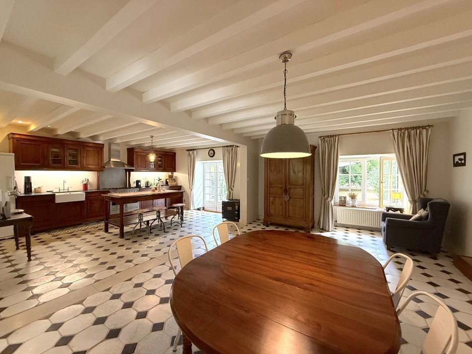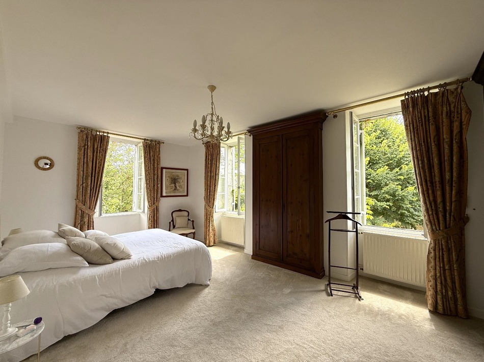 Two gates and high stone walls conceal this magical place, with its intimate atmosphere and noble character, located just a few minutes' walk from the town center. A peaceful life is guaranteed, close to amenities, schools, restaurants, and social activities. Nestled in the heart of a magnificent 3,600 m² enclosed park, planted with mature vegetation, with a spacious heated swimming pool and pool house, this large stone residence, accompanied by its barn and guest house, unfolds all its majesty around a south-facing gravelled courtyard. The entrance, with its warm atmosphere and artistic character, opens onto a vast 44 m² living room with a beautiful equipped kitchen, opening directly onto the terrace and the park. A bright 41 m² living room with a fireplace completes this convivial space. Upstairs: two spacious bedrooms, each with private bathroom and toilet, a very large third bedroom, a bathroom with a walk-in shower, and, as a bonus, a large room ideal for an office or relaxation area on the second floor. The guest house, completely independent from the main house, includes a living room with kitchen, a lounge, and upstairs, a bedroom with bathroom. The renovation has been carried out with care, combining authentic materials and modern touches for optimal comfort: mains drainage, new roofs, Viessmann gas boiler, garage, 50 m² outbuilding, heated swimming pool with electric shutter, park without any vis-à-vis... All in impeccable condition, immediately habitable. This character property offers an enchanting living environment and an exceptional quality of life.