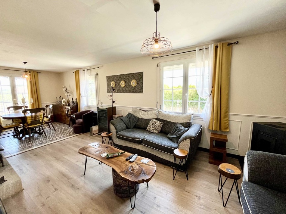 Our local agent offers you, on the edge of the historic and lovely town of Availles-Limouzine in the Nouvelle-Aquitaine region of France, this fully-renovated bungalow with views and a large garage. The spacious hallway leads to the dining / living room of 29m2, with windows on two sides, and to a large square kitchen (that also connects to the main room), to two bedrooms (18m2 and 11m2), to a shower room with WC, and to another WC. Stairs lead down to a large clean basement in good condition, beneath the entire house, with a garage (easily large enough for two cars), workshop space, and laundry room. The house is double-glazed with an insulated attic, and has a recent pellet fire, a log-burner, and electric radiators. It's connected to mains drains and fibre internet is available. The town centre, 700 metres from the house, has a fabulous restaurant, two cafés with food, a bakery, good grocery store, weekly food market, home decor shop with coffee, pharmacy, two doctors and two dentists, hairdresser, bank, and a garage with fuel.