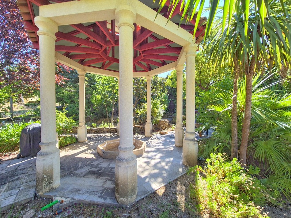 Discover your dream home in the heart of southern France. This charming bungalow-style residence is located in Laurens, a picturesque wine village with a warm community and local amenities, just 20 minutes from Béziers and 25 minutes from the Parc Naturel du Haut-Languedoc perfect for nature lovers and outdoor adventures. The home offers 130 m² of living space, all on one level, with 4 spacious bedrooms, a fully equipped kitchen, a utility/laundry room, and a bright, open living area with a fireplace at its center. The layout is thoughtfully designed in a U-shape around a central pool, creating a peaceful courtyard feeling and allowing direct access to the garden from nearly every room. ? Highlights: Large plot of land offering privacy and endless possibilities Covered terraces, a garden pavilion, and an outdoor area ready for completion ideal for customization Attractive outbuildings with great potential (some finishing required) 20 m² workshop space for hobbies or work-from-home setups Underground wine cellar a hidden gem for wine enthusiasts Modern heat pump for energy-efficient comfort Whether you're seeking a full-time residence, holiday home, or creative retreat, this property delivers a rare blend of space, serenity, and tropical charm.