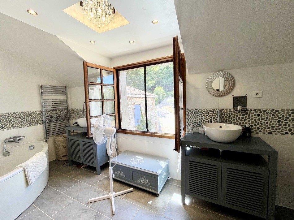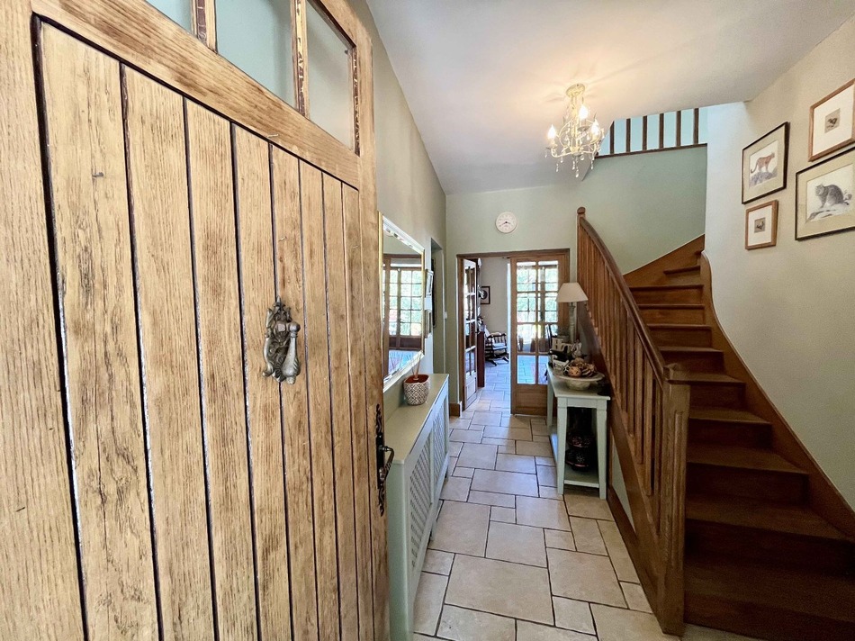 Our local agent offers this stunningly renovated French detached stone house, at the end of a quiet country road with beautiful gardens facing open countryside and an 11m x 6m pool. Downstairs, a 42m2 kitchen with quality oak units, a dining room and lounge (with logburner) open to one-another (60m2 in total) and to the back terrace, a study, laundry room, and a WC. Upstairs, five bedrooms all with nice views and each with an ensuite bathroom or shower room with WC. The master bedroom (29m2) has an ensuite bathroom (14m2) with both a corner bathtub and a large walk-in shower. The upstairs hallway has a built-in cupboard. The house has modern electrics, double -glazing, a septic tank that conforms to current standards, and central heating. There is a garage attached to the house. Despite such a peaceful countryside setting, the house is only 2km from Availles-Limouzine, a lovely small town on the Vienne river, with a fabulous restaurant, two cafés, good grocery shop, weekly food market, garage with fuel, pharmacy, doctors and dentists, bank, post office and hairdresser. The area offers many interesting places to visit, being at the juncture of the departments of Vienne, Haute Vienne and Charente, with their differing landscapes and characteristics, and plenty of local events run from spring through to autumn.