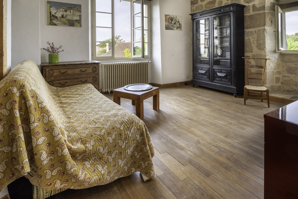 Former House of the Consuls Charming house with breathtaking views, in the heart of one of the most beautiful villages in France on the Way of St. James Situated in a dominant position, this adorable house benefits from an exceptional location, in a preserved and authentic setting. Upon entering the property, a well-kept and beautifully planted garden welcomes us, announcing the unique character of the place. After climbing a few steps, the terrace and balcony offer a breathtaking panoramic view: a real favorite for lovers of nature and peace. The living room, bathed in light thanks to its south-facing orientation, brings together the kitchen, the living room (it can be transformed into a bedroom) and the dining room in a warm and friendly atmosphere. A corridor leads to 1 bedroom, a bathroom and a separate toilet. On the garden level, a large room that can be converted (ideal for a guest room or an office), a boiler room and a spacious cellar complete this property. Just a few meters away, a beautiful barn whose structure (joists) has already been renovated, offers considerable development potential for an additional project or an extension. A rare property in an exceptional environment. Visit without delay.