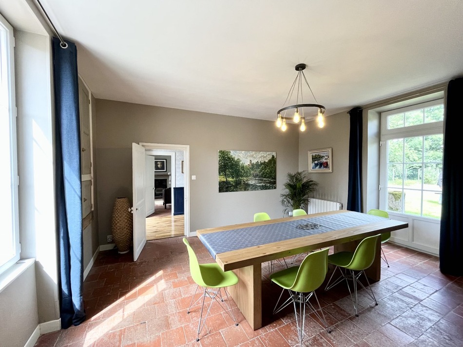 I'm , the local agent for this recently-renovated elegant detached stone house with three bedrooms and two bathrooms, set back from the street behind iron railings and gates. With insulated walls and new double-glazed windows and doors, this will be a comfortable home. Mains drains, fibre internet, new electrics. From the bright entrance hallway with wood panelling, the living room (22m2) is on your left, and the dining room (23m2) that opens to the garden is on your right, and there's a WC. The dining room connects to the kitchen (32m2) that again opens to the garden. The living room, dining room and kitchen all have windows on two sides, and as you can see from the virtual tour video, the house has a lovely bright and airy feel. The dining room and living room have their original terracotta floors. The living room and the kitchen each have a logburner, and there are new electric wall radiators throughout. Oak stairs lead up from the entrance hallway to a spacious landing, leading to the master bedroom (21m2) with windows on two sides, to a bathroom (9m2) with a 140cmx90cm shower plus a bathtub, and to the second bedroom (10m2) - all beautifully presented and recently decorated with taste and care. The third bedroom is 21m2 plus an ensuite shower room and a 6m2 dressing room, and has windows on two sides it's accessible from a second staircase from the kitchen. Attached, a garage, and a large flat fenced garden with a fenced vegetable plot and well. The village has a café-restaurant, library/post office, school, a fishing lake with public barbecue area, and a great friendly community with regular events at the village hall. A bakery van delivers daily, and a butcher weekly. 2km away is the small town of L'Isle Jourdain, with schools, supermarket with fuel, seven café-restaurants, bakery, newsagents/tabac, doctors, dentist, pharmacy, opticians, garden centre, DIY store and garage, plus a swimming pool, tennis courts, and waterskiing/kayaking.