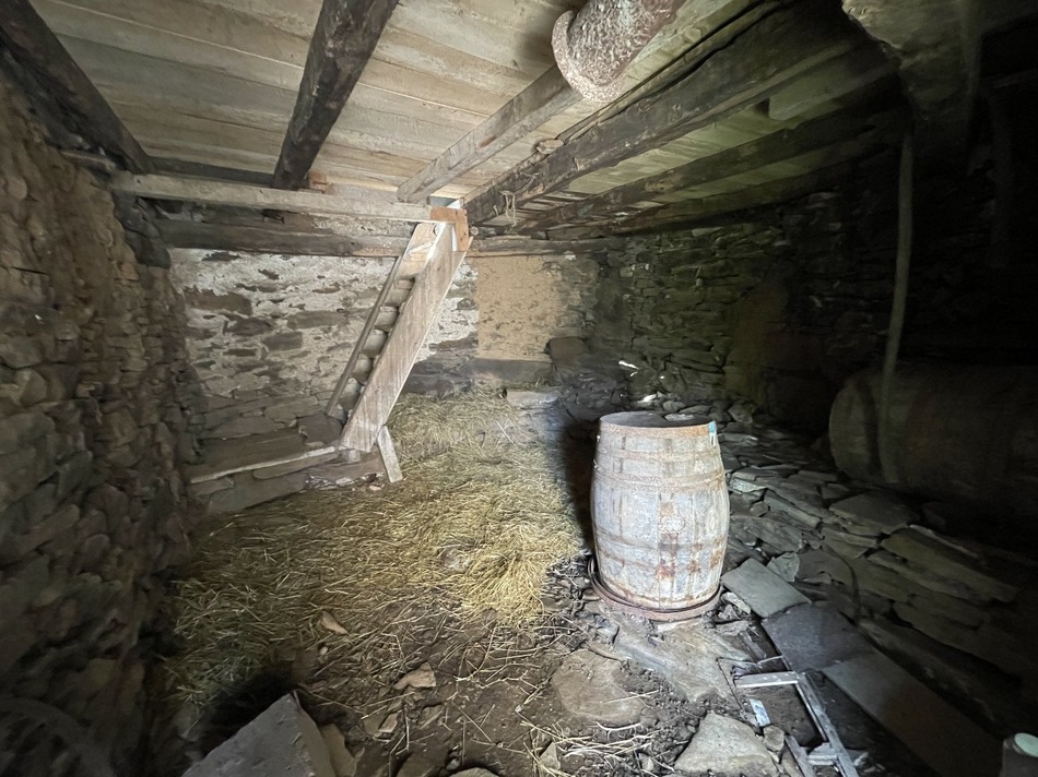 Please read the whole of this advert before contacting us. Small farm complex in remote location. House, barn, drying shed and bread oven all in need of renovation. Access by foot - 15 minute walk down a track, 500 metres - no vehicular access possible (no quad). Steep rocky terrain ( in part, vertical!). The first 400m belong to the commune and are part of a marked hiking track. After that, 100m down steep slopes to the house. No electricity or running water and no possibility of connection. The property has spring water (not 100% reliable) 75m from the house. The spring does dry up, so some system to stock water would be needed. The mobile phone network is good! No land line though. No drainage for toilet/waste water. Solutions to these problems would need to be sought. The house has two rooms - living room of 28m² and a bedroom of 19m². Over the top are two attic spaces and under the house, two cellars. The roof and roof timbers of the house are in good order. On the land above the house is a barn on two levels - total surface 58m². Above that is a chestnut drying shed and behind the house there is a building of 18m² with a bread oven and a smaller building in ruin. The land surface is just over 4 hectares but not suitable for horses/donkeys as too steep and rocky. It would make a great totally untypical hide away. Superb views over the Truyère valley. Twenty minutes by car to shops in Mur de Barrez (after the 15 minute walk to the road). Note - high tension line in the valley below (100m as the crow flies, 57m below the house and not in the line of vision).