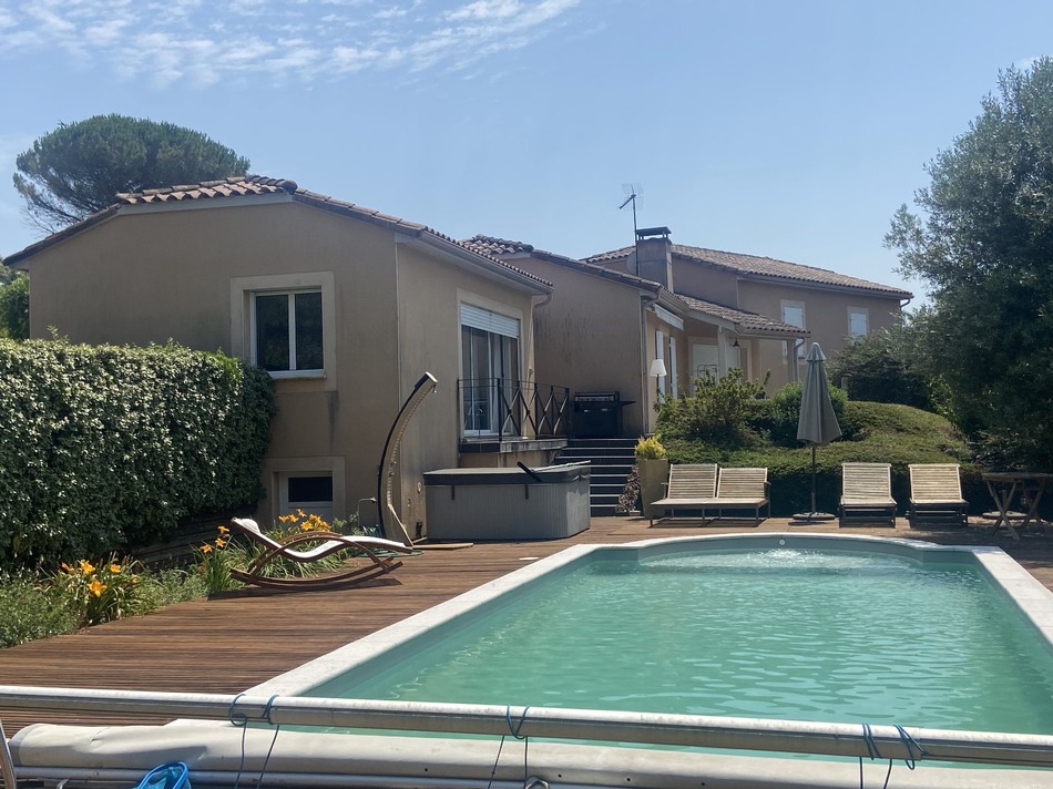 In the middle of tourist sites, beautiful property with wooded and enclosed park, offering 5 bedrooms including a master suite with private terrace, large living room kitchen of over 60 m², two bathrooms including one with bathtub, garages, parking spaces, cellars, outbuilding garden, terraces, swimming pool and other surprises to discover. With over 160 m² of living space, the house allows you to create a parental space isolated from that of the children or friends. The terraces are accessible from all the rooms on the ground floor. The landscaped and well-kept exteriors, not overlooked, testify to the state of presentation and maintenance of this quality property. A stone's throw from the shops, you will enjoy a quiet place, suspended in time, with all modern comforts and quality services, such as the three types of heating ranging from the pellet stove to reversible air conditioning, including underfloor heating. You can relax by going to the golf course located a stone's throw from the property, or enjoy all the must-see tourist attractions in the area.