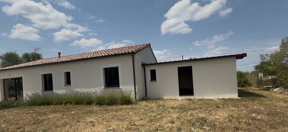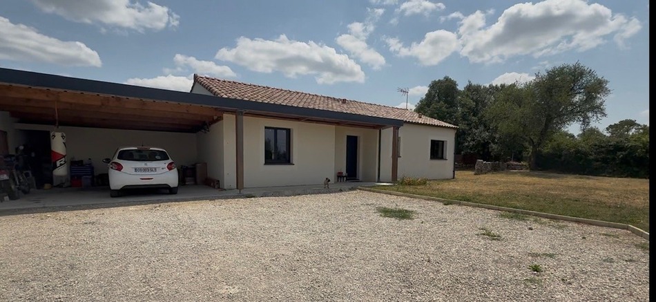 Maison individuelle moderne de plain-pied 2 chambres Grand terrain clos de 2 455 m² Venez découvrir cette charmante maison contemporaine de plain-pied offrant confort et fonctionnalité. Elle se compose d'un bel espace de vie lumineux avec séjour/salle à manger ouvert sur une cuisine moderne entièrement équipée, accompagnée d'une buanderie séparée. Côté nuit, vous trouverez deux chambres, une salle d'eau et un WC indépendant. À l'extérieur, profitez d'un vaste terrain plat et entièrement clos de 2 455 m², agrémenté d'une terrasse exposée plein sud, d'une piscine hors sol, d'un carport et d'un abri de jardin. Les atouts de ce bien : Maison récente et de plain-pied Terrain spacieux et entièrement clôturé DPE A (excellente performance énergétique) Climatisation réversible par système de gainage Fosse septique conforme aux normes Adoucisseur d'eau installé Un cadre de vie agréable, alliant modernité, confort et grands espaces. À visiter sans tarder !