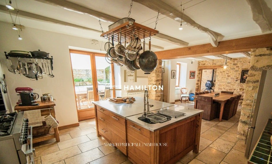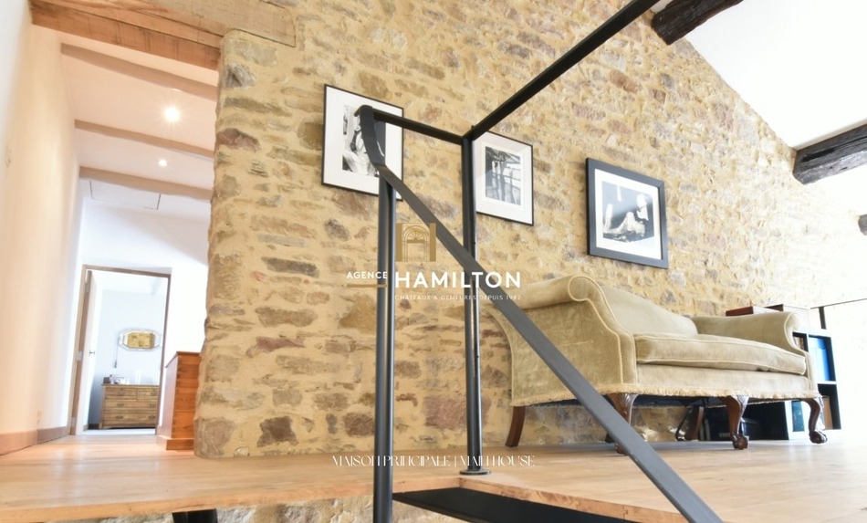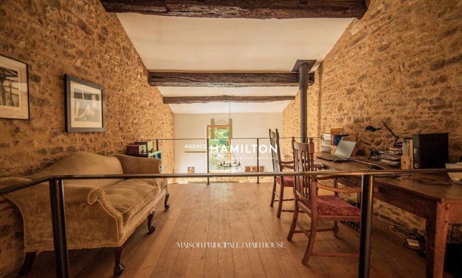 CORDES-SUR-CIEL - Located in the Cérou valley, 3 km from Cordes-sur-Ciel and 12 km from Monestiés, this renovated property consists of a main house, an outbuilding converted into a gîte, and large "workshop" hangars that can accommodate up to 6 vehicles. The entire property offers a pleasant setting for a primary residence, holidays, or a rental business. The owners' house is centred around a open-plan living room measuring approximately 40 m², which includes a dining room and a semi-professional kitchen equipped with a gas stove, a stainless steel central island and an authentic built-in pantry. The living room and adjacent lounge, measuring approximately 30 m², fitted with a double combustion stove, feature genuine travertine floors and large bay windows opening onto the terrace and courtyard with its stone walls. Upstairs, a custom-made mezzanine of over 15 m², used as an office, was created by a metalworker, as were the stairs and metal structures. The steps and floors are made of solid wood, leading to the sleeping area. This area includes a master suite organized with a hallway serving a 20 m² bedroom with views of the countryside and a bathroom with both a bathtub and a shower. Two additional bedrooms, each with its own bathroom, toilet, and private access, complete the house. They can be reached from a vestibule that serves as a reading room or from an independent outdoor terrace. The outbuilding, converted into a gîte, offers a living room of nearly 30 m² with an open kitchen and exposed stone, an 18 m² bedroom on the ground floor with a bathroom, and a second bedroom of approximately 18 m² upstairs, also with a bathroom. A private terrace completes this independent accommodation. The property also features a 13-meter by 3-meter swimming pool, oriented towards the Cérou valley, as well as a large enclosed hangar of 150 m² with a 40 m² mezzanine, currently used for parking, a workshop, a laundry room, and a cellar. A large attached lean-to provides an additional wooden surface that can serve as a carport. The property is heated with fuel oil, with underfloor heating, in the main house and gas heating for the gîte. The sanitation is handled by a septic tank shared by the buildings. The house is not in a flood zone. The roofs are checked and cleaned annually. For any further information or to arrange a visit, please feel free to contact us. VIRTUAL TOUR AVAILABLE Frederic BASTEMEIJER (we also speak English / Dutch) Hamilton Cordes-sur-Ciel, one of the Plus Beaux Villages de France