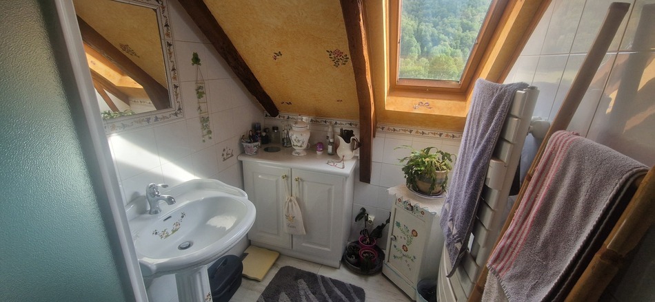 For sale, charming character house combining comfort and authenticity, located in a calm and pleasant environment. On the ground floor: Beautiful kitchen open to a bright living room/dining room Wood stove for a warm atmosphere Upstairs: 2 bedrooms 1 shower room with toilet 1 closet Comfort: Double glazing in aluminum Roller shutters Wood heating + good insulation Exteriors: 1 plot of land of 160 m² with non-adjoining chicken coop 1 plot of land of 240 m² with new garage and non-adjoining vegetable garden 1 plot of land with wood of 1,200 m² non-adjoining Finished basement: Wine cellar Space for cans / storage Total surface area of land: 1600 m² Ideal house for a peaceful life, close to nature, while enjoying a good level of comfort. Contact me for more information or a visit