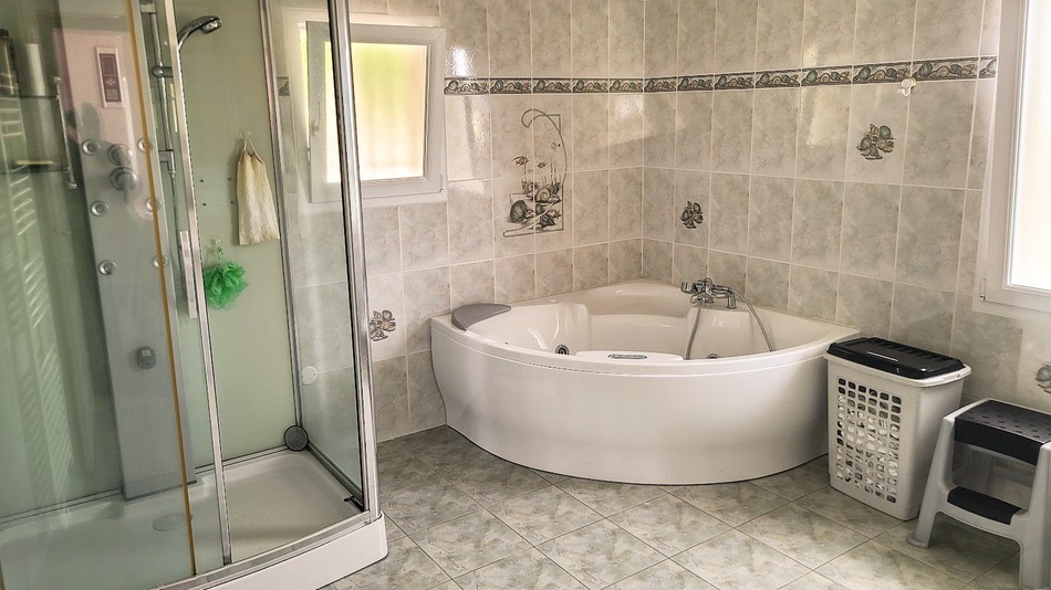 Veronique Bessieres and Manon Chaubet [ Agency | Countryside Character House.] offer you: Turnkey, single-story, bright, economical, and secure house, ideal for enjoying the gentle lifestyle of Quercy Blanc. On the heights, discover this contemporary house from 2010 designed for comfort and brightness. Its central living space, an octagonal room including a fully equipped kitchen, all on 66m² and a covered terrace offering a breathtaking view. Night side: 4 bedrooms (9 to 14 m²), a large bathroom with corner bathtub and shower, double sink and storage, as well as a shower room with WC. The layout has been designed for fluid circulation, accessible even by wheelchair. High-end insulation: main heating by wood stove, supplemented by electric radiators and reversible air conditioning in the living room. PVC joinery, electric roller shutters, adjoining garage and laundry room. Outside, enjoy a salt water swimming pool with electric shutter, facing south, an enclosed garden with automatic gate and videophone, wooden cabin, shelter, chicken coop, vegetable garden, fruit trees and 3000 L water reserve on an enclosed hillside plot. Information on the risks to which this property is exposed is available on the Georisques website: www.georisques.gouv.fr »