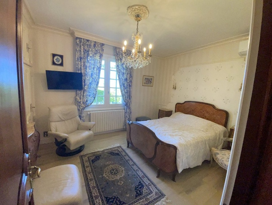 An exceptional Castle, a racecourse unique in France due to its hilly landscape and its view of the Castle, 11 days of horse racing organized per year, it even has the particularity of being a training center for racehorses all year round and a Casino will open its doors in 2026 (75 slot machines, 20 English roulette stations ...) ... these are the local assets for the location of the proposed house. Its assets are also numerous, especially if you want to make guest rooms because a part is entirely dedicated and ready to operate. With a separate entrance, a reception, a kitchen, a room for catering and 5 bedrooms with shower room and WC for each of them. The other part offers a large living room, a dining kitchen, two bedrooms in master suite. Today, the two parts communicate via the first floor, but this house can also accommodate a lovely family and it is possible to create a communication via the ground floor. On the garden level, a winter garden (approximately 70m²) with large bay windows overlooking the park will be a perfect place for relaxation, games such as billiards or others. The garages of the house are also very large and can store several cars. The garage of the outbuilding can accommodate a camper van. A terrace under the trees with barbecue allows you to spend good times, if the weather is not clement, a room of 35m² with WC and bar is planned right next door. Many assets, a beautiful construction, quality materials, a borehole, a well, a large vegetable garden, so if you are looking for a property for bed and breakfast or if you want a large well-equipped house, this is the one you should visit. We have the energy and water bills for this property, which will allow you to see the real costs. Information on the risks to which this property is exposed is available on the Georisques website: www.georisques.gouv.fr »